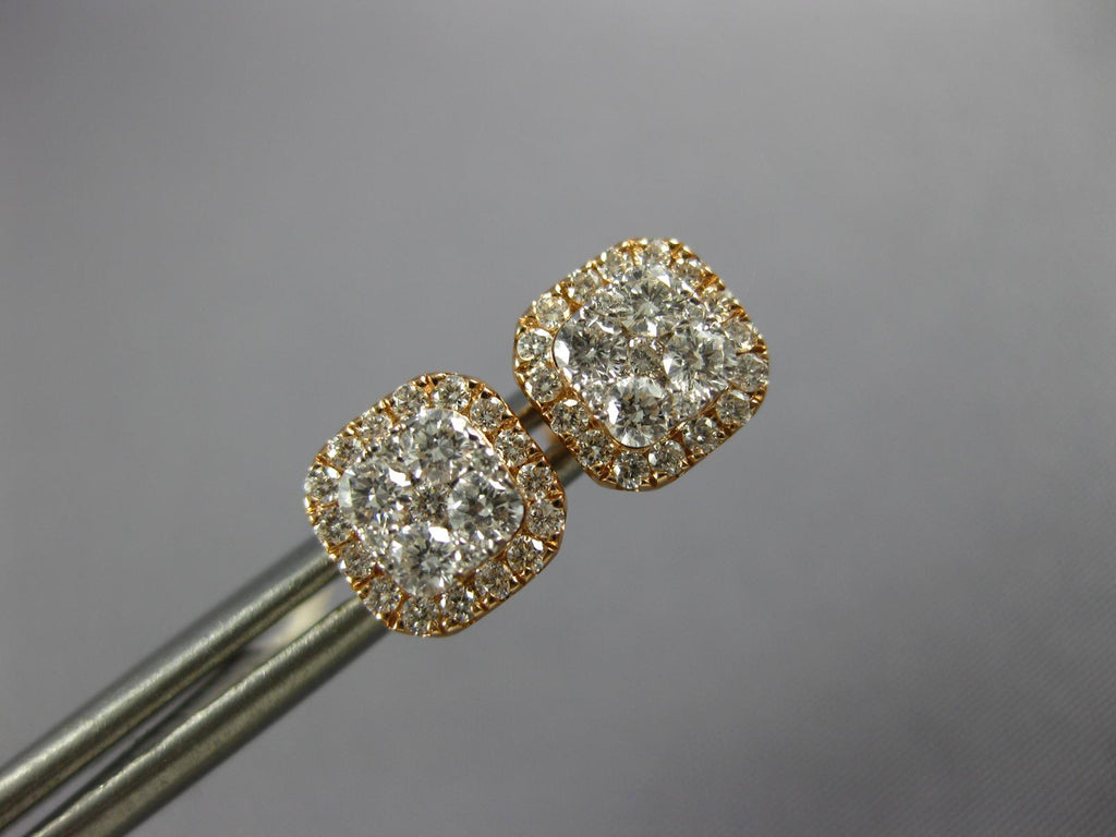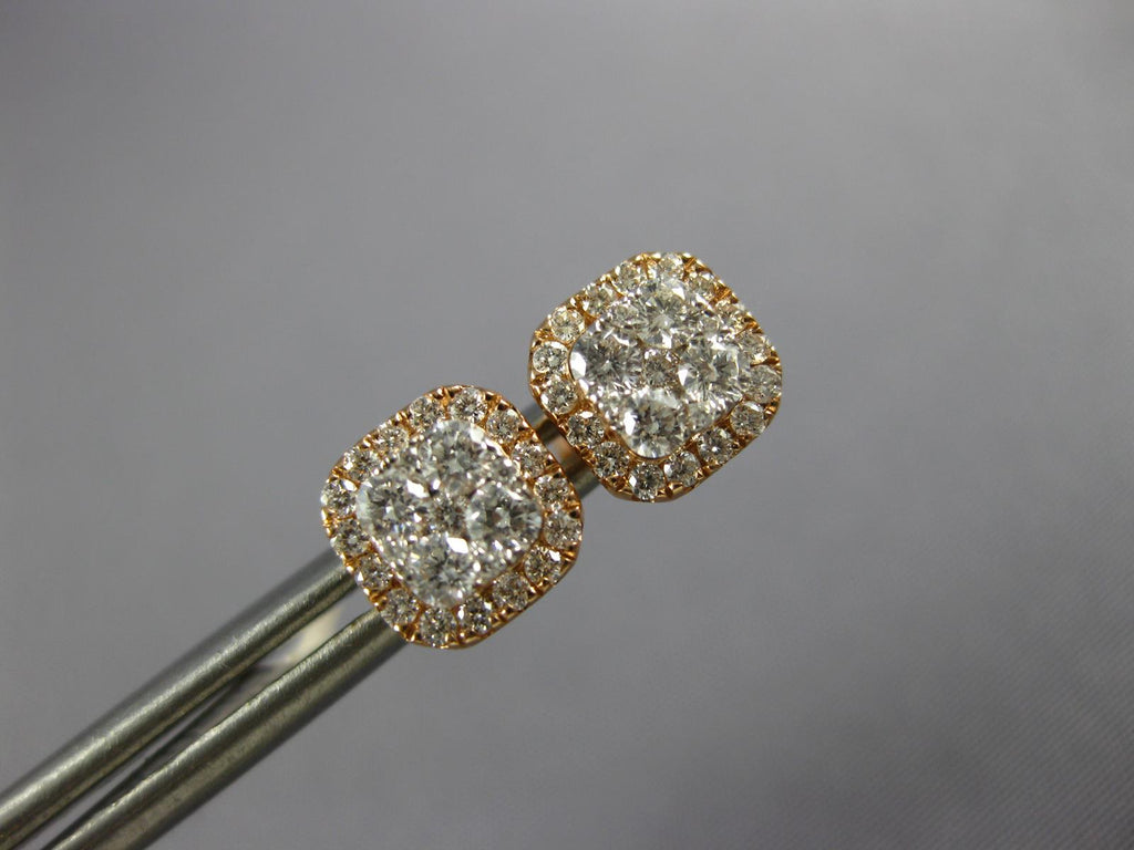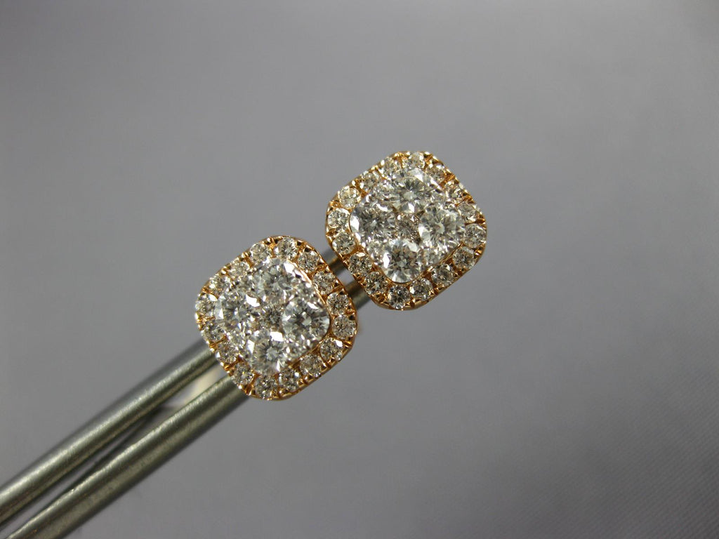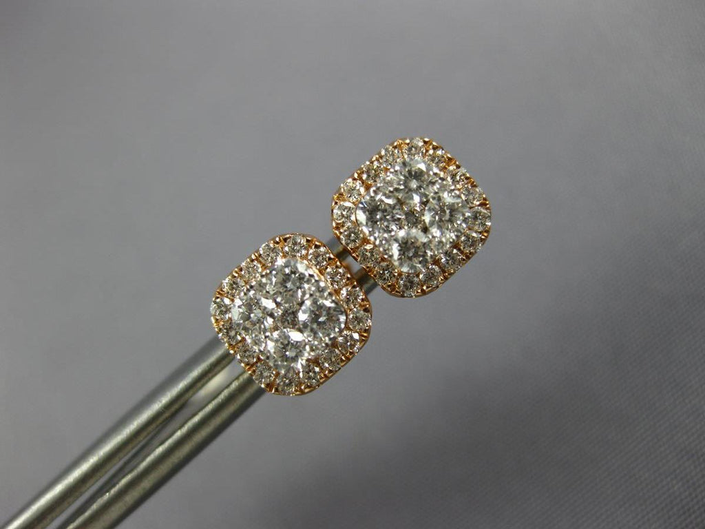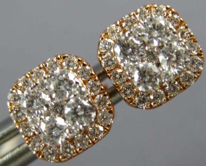 ESTATE .49CT DIAMOND 18KT ROSE GOLD 3D CLASSIC CLUSTER SQUARE HALO STUD EARRINGS