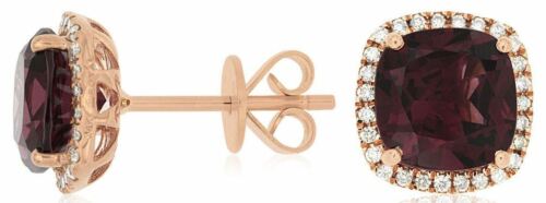 ESTATE 14KT ROSE GOLD STUD EARRINGS. 3D HALO DESIGN. DIAMONDS ARE F/G COLOR, VSSI CLARITY .21 CARATS. AAA EXTRA FACETED CUSHION CUT RUSSALITES ARE 5.15 CARATS. WRITTEN APPRAISAL AVAILABLE. COMES IN A PRESENTABLE GIFT BOX.