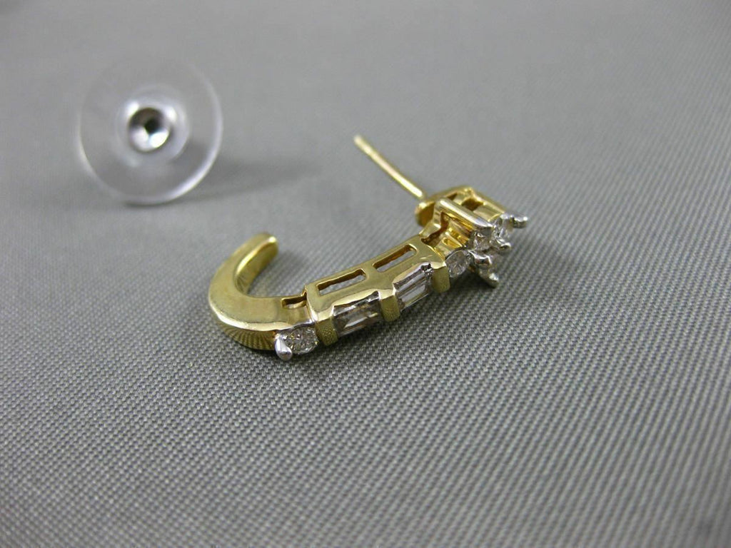 ESTATE 14KT YELLOW GOLD HANGING EARRINGS. 3D MULTI ROW STAR DESIGN. BAGUETTE & ROUND DIAMOND ARE F/G COLOR, VSSI CLARITY .50 CARATS. MEASURES 18mm X 3mm WIDE. WRITTEN APPRAISAL AVAILABLE. COMES IN A PRESENTABLE GIFT BOX
