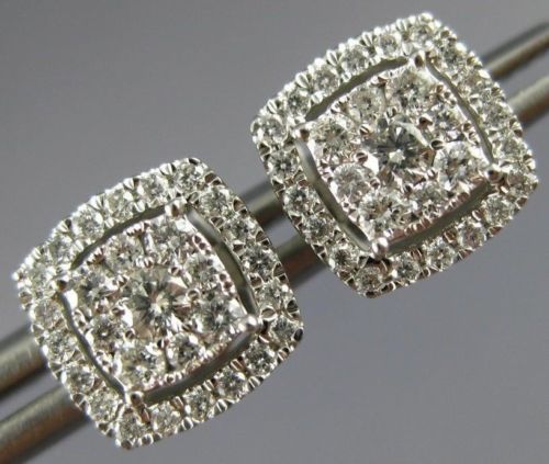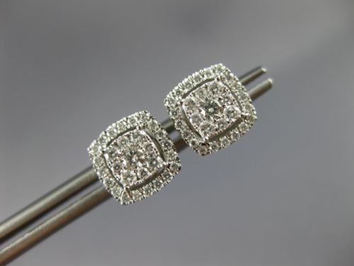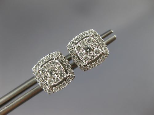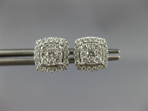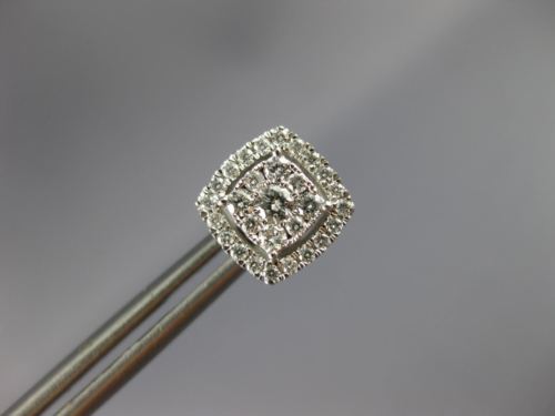 ESTATE .50CT DIAMOND 14K WHITE GOLD 3D CLUSTER SQUARE HALO CLASSIC STUD EARRINGS