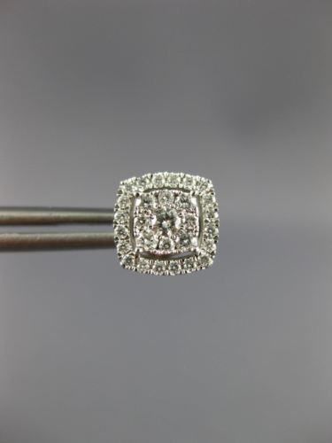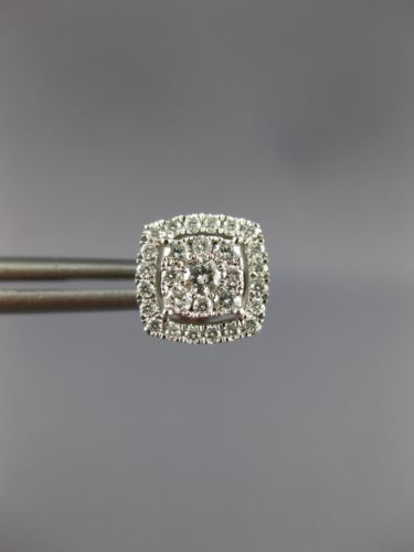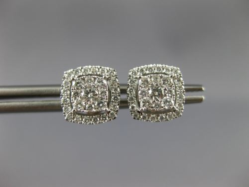ESTATE 14KT WHITE GOLD STUD EARRINGS. 3D CLUSTER SQUARE HALO CLASSIC DESIGN. DIAMONDS ARE F/G COLOR, VSSI CLARITY .50 CARATS. MEASURES 8mm WIDE. WRITTEN APPRAISAL AVAILABLE. COMES IN A PRESENTABLE GIFT BOX.