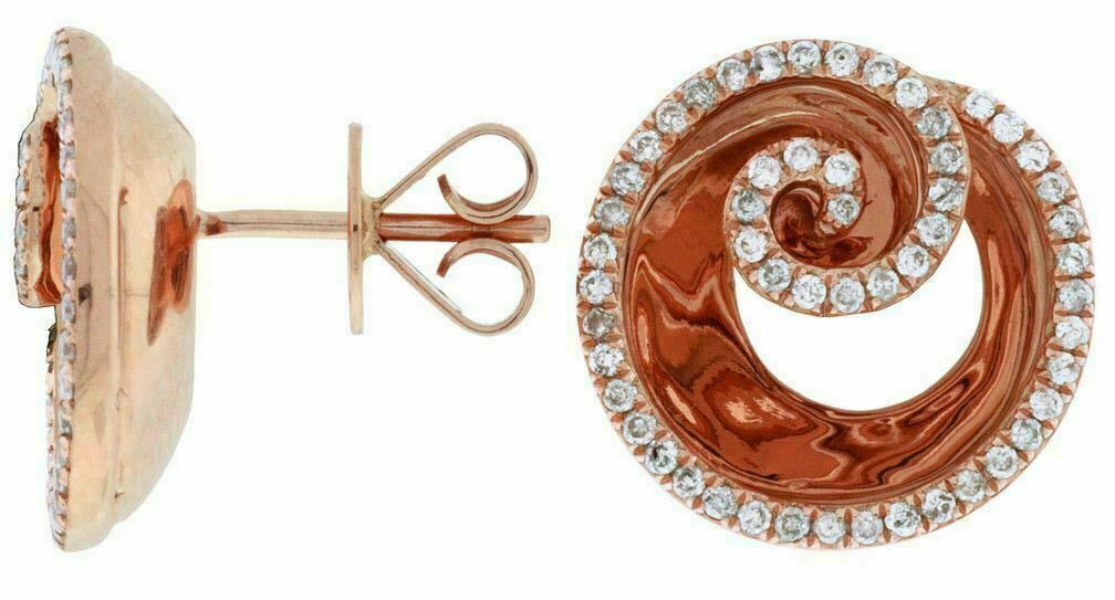 ESTATE 14KT ROSE GOLD STUD EARRINGS. 3D CIRCULAR SWIRL CLASSIC DESIGN. DIAMONDS ARE F/G COLOR, VSSI CLARITY .50 CARATS. WRITTEN APPRAISAL AVAILABLE. COMES IN A PRESENTABLE GIFT BOX.