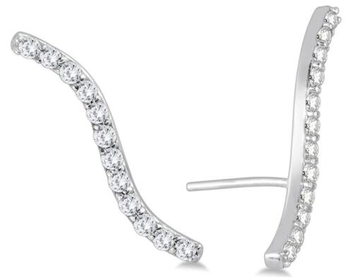 ESTATE .50CT DIAMOND 14KT WHITE GOLD 3D CLASSIC SWIRL WAVE EAR CLIMBER EARRINGS