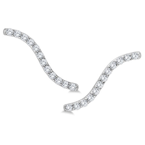 ESTATE 14KT WHITE GOLD EAR CLIMBER EARRINGS. 3D CLASSIC SWIRL WAVE DESIGN. DIAMONDS ARE F/G COLOR, VSSI CLARITY .50 CARATS. WRITTEN APPRAISAL AVAILABLE. COMES IN A PRESENTABLE GIFT BOX.