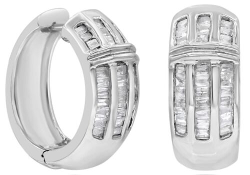 ESTATE .50CT DIAMOND 14KT WHITE GOLD BAGUETTE CLASSIC 3 ROW HUGGIE FUN EARRINGS