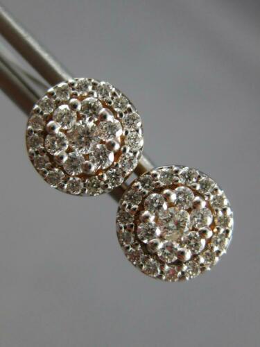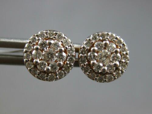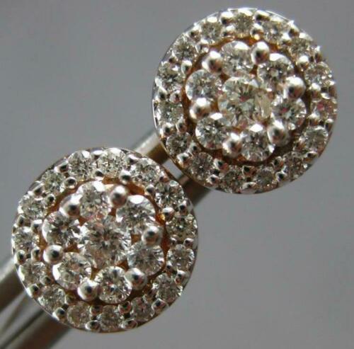 ESTATE 14KT WHITE AND ROSE GOLD STUD EARRINGS. 3D CLUSTER FLOWER HALO DESIGN. DIAMONDS ARE F/G COLOR, VSSI CLARITY .50 CARATS. MEASURES 8mm WIDE. WRITTEN APPRAISAL AVAILABLE. COMES IN A PRESENTABLE GIFT BOX.