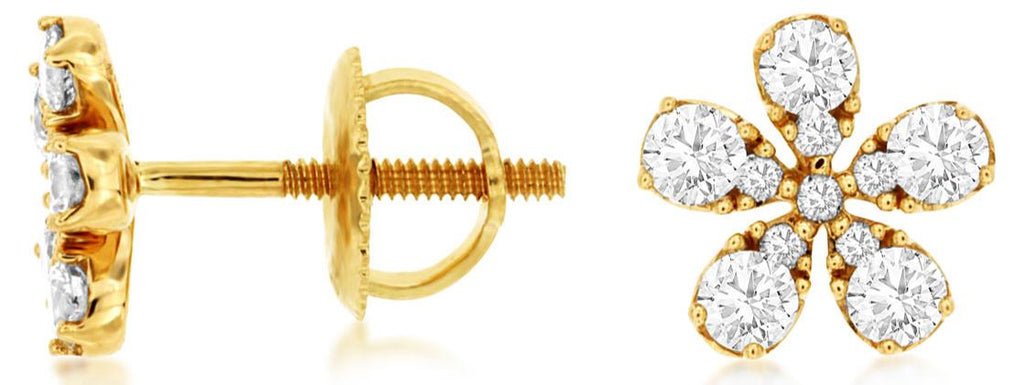 ESTATE 14KT YELLOW GOLD SCREWBACK STUD EARRINGS. 3D CLASSIC FLOWER DESIGN. ROUND DIAMONDS ARE F/G COLOR, VSSI CLARITY .50 CARATS. WRITTEN APPRAISAL AVAILABLE. COMES IN A PRESENTABLE GIFT BOX.
