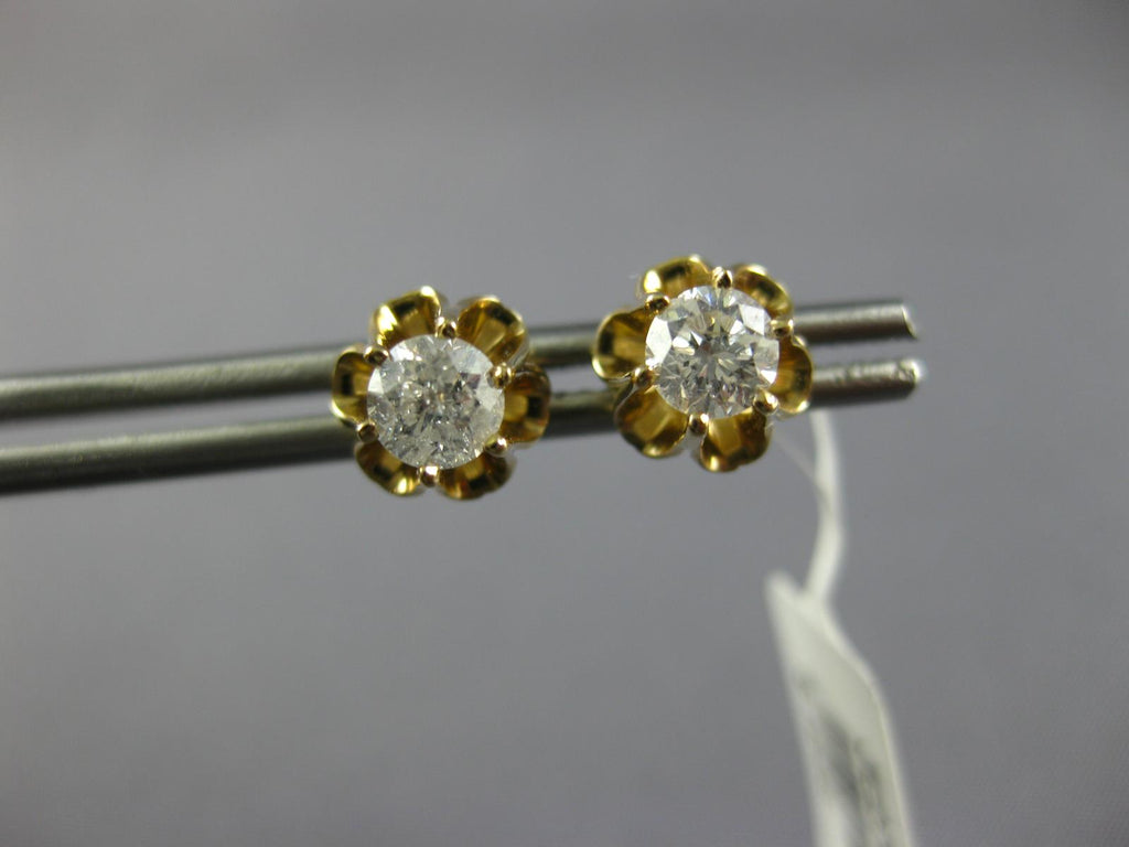 ESTATE 14KT YELLOW GOLD FUN LOVE STUD EARRINGS. 3D CLASSIC ROUND DESIGN. ROUND DIAMONDS ARE F/G COLOR, VSSI CLARITY .50 CARATS. MEASURES 6.5mm WIDE. WRITTEN APPRAISAL AVAILABLE. COMES IN A PRESENTABLE GIFT BOX.