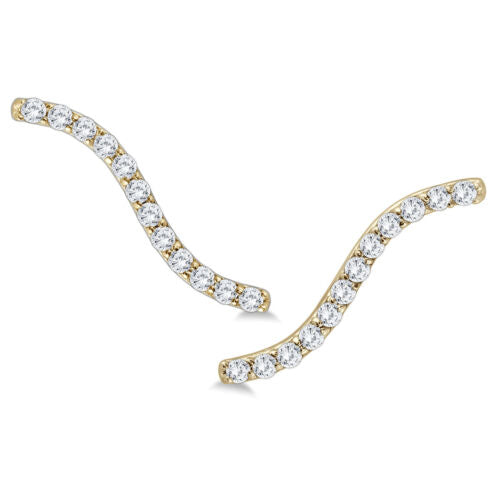 ESTATE 14KT YELLOW GOLD EAR CLIMBER EARRINGS. 3D CLASSIC SWIRL WAVE DESIGN. DIAMONDS ARE H/I COLOR, SI CLARITY .50 CARATS. WRITTEN APPRAISAL AVAILABLE. COMES IN A PRESENTABLE GIFT BOX.