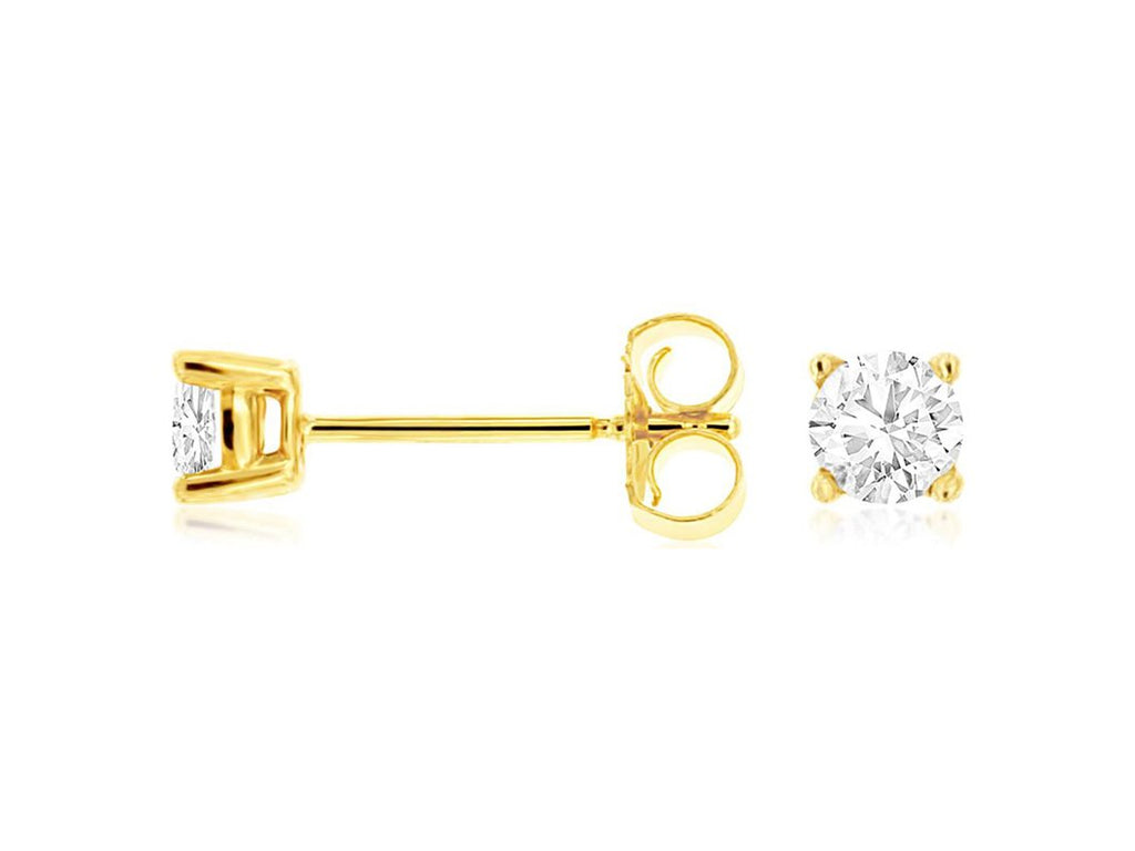 ESTATE 14KT YELLOW GOLD STUD EARRINGS. 3D CLASSIC FOUR PRONG DESIGN. ROUND DIAMONDS ARE F/G COLOR, VSSI CLARITY .50 CARATS. WRITTEN APPRAISAL AVAILABLE. COMES IN A PRESENTABLE GIFT BOX.