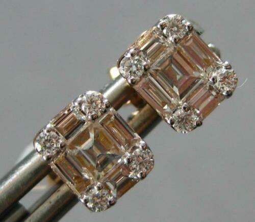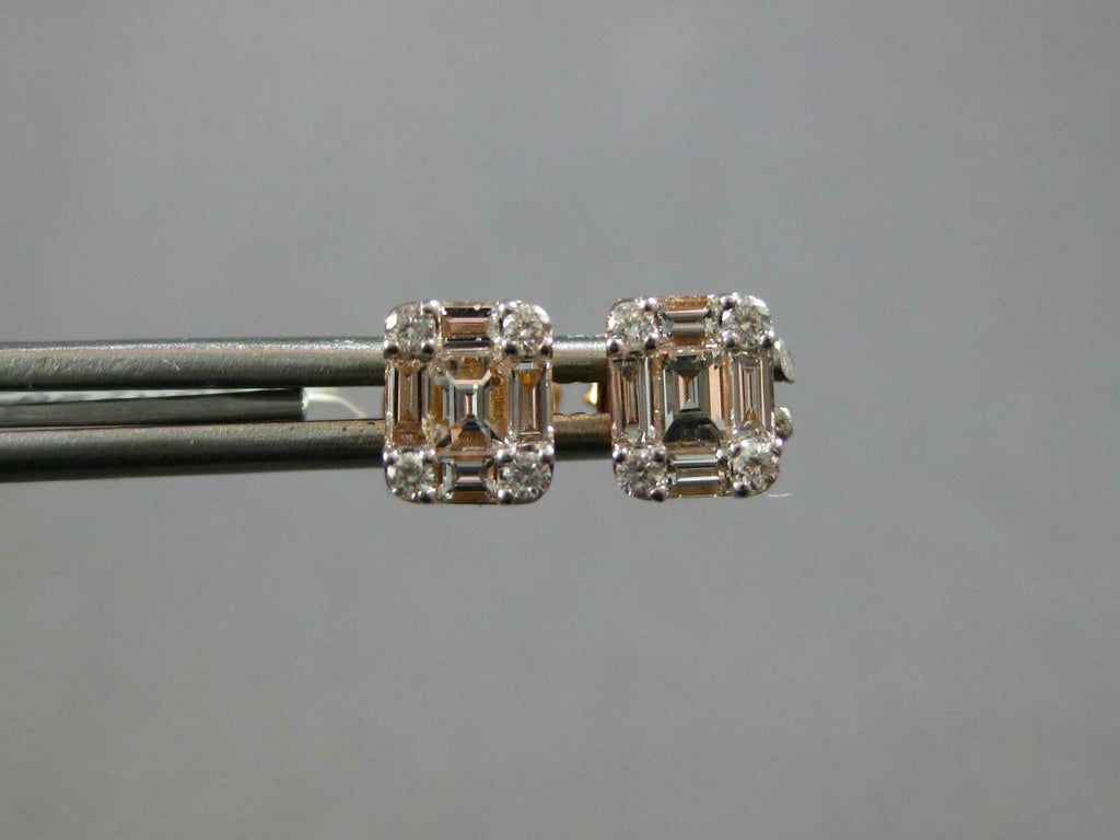 ESTATE .50CT DIAMOND 18K ROSE GOLD ROUND & BAGUETTE CLUSTER SQUARE STUD EARRINGS