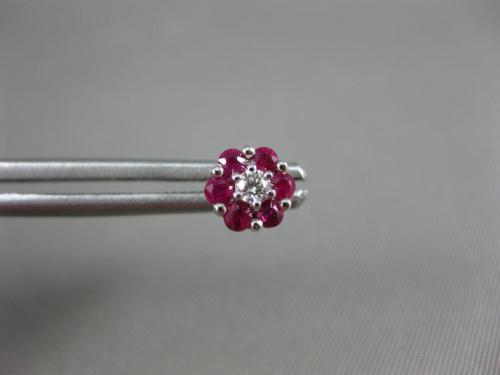 ESTATE 14KT WHITE GOLD STUD EARRINGS. 3D FLOWER CLASSIC DESIGN. DIAMONDS ARE F/G COLOR, VSSI CLARITY .09 CARATS. AAA RUBIES ARE .41 CARATS. MEASURES 5mm WIDE. WRITTEN APPRAISAL AVAILABLE. COMES IN A PRESENTABLE GIFT BOX.