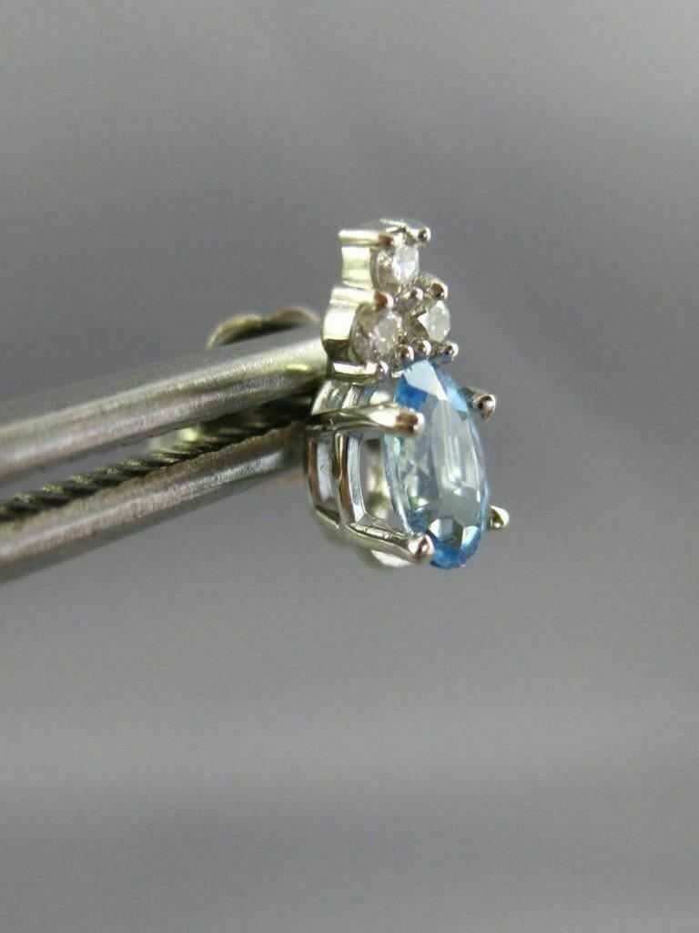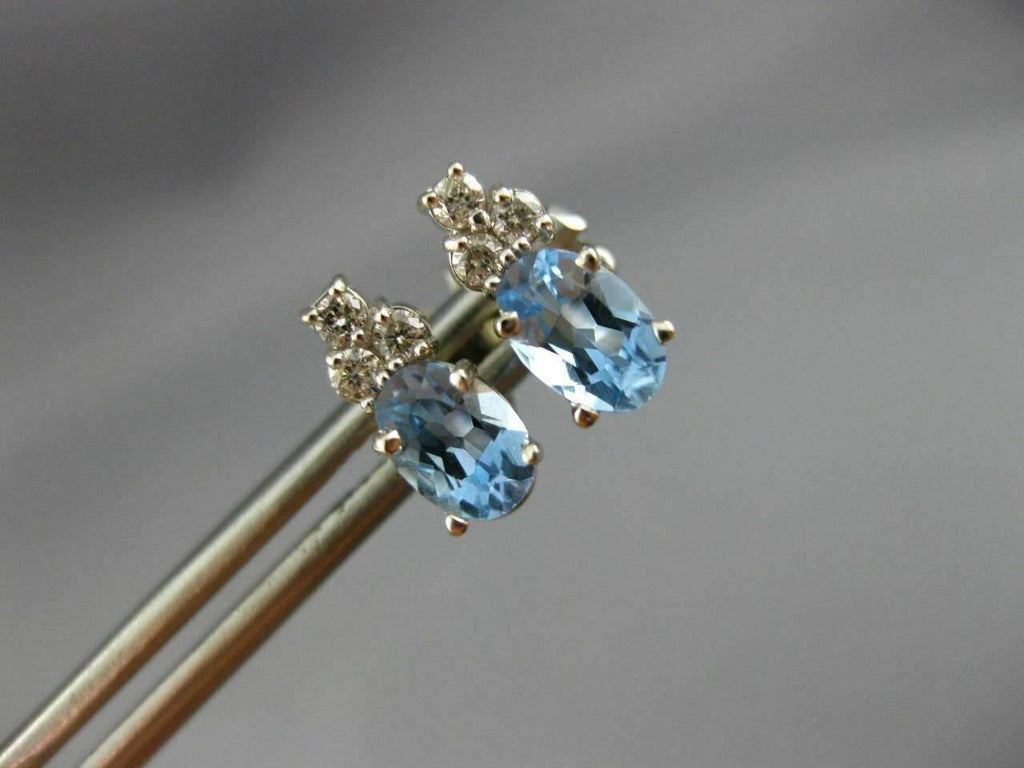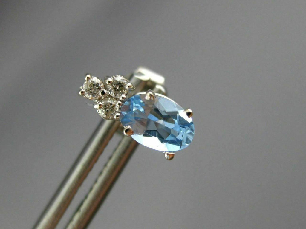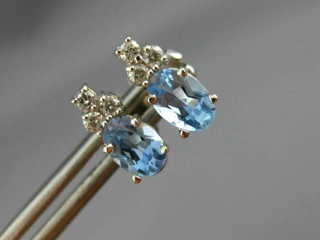 ESTATE 14KT WHITE GOLD STUD EARRINGS. 3D CLASSIC DESIGN. ROUND DIAMONDS ARE F/G COLOR, VSSI CLARITY .50 CARATS. AAA OVAL BLUE TOPAZ .36 CARATS. MEASURES 9MM X 4MM. WRITTEN APPRAISAL AVAILABLE. COMES IN A PRESENTABLE GIFT BOX
