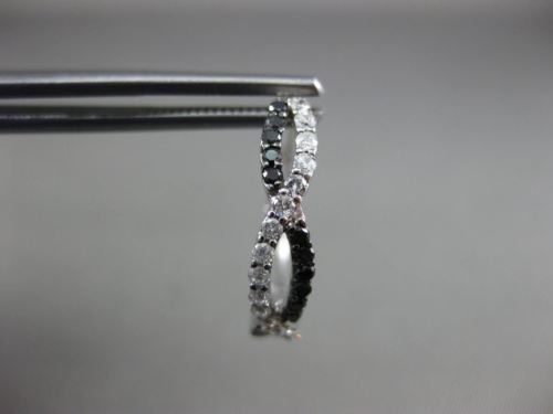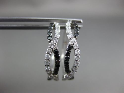 ESTATE 14KT WHITE GOLD HUGGIE HANGING EARRINGS. 3D CLASSIC INFINITY DESIGN. WHITE DIAMONDS ARE F/G COLOR, VSSI CLARITY.  WHITE AND BLACK DIAMONDS ARE .50 CARATS. MEASURES 20mm X 4mm. WRITTEN APPRAISAL AVAILABLE. COMES IN A PRESENTABLE GIFT BOX.
