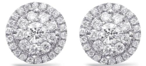 ESTATE 14KT WHITE GOLD STUD EARRINGS. 3D CLASSIC FLOWER HALO DESIGN. ROUND DIAMONDS ARE F/G COLOR, VSSI CLARITY .52 CARATS. MEASURES 8mm WIDE. WRITTEN APPRAISAL AVAILABLE. COMES IN A PRESENTABLE GIFT BOX.
