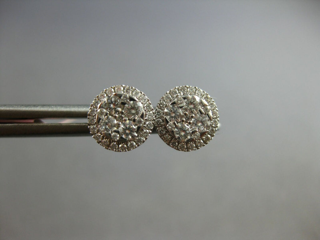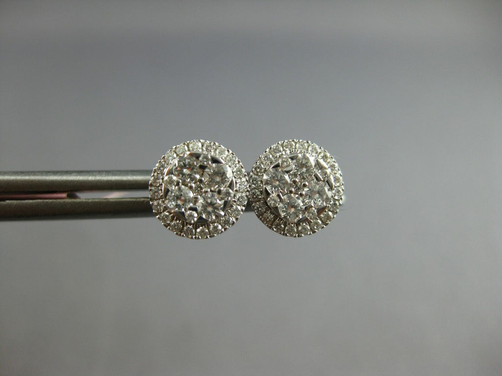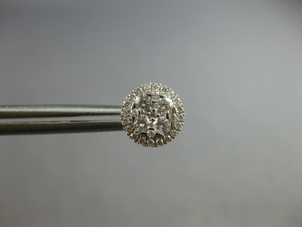 ESTATE .52CT DIAMOND 14KT WHITE GOLD 3D CLASSIC ROUND CLUSTER HALO STUD EARRINGS
