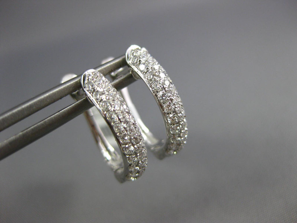 ESTATE .52CT DIAMOND 18K WHITE GOLD 3 ROW OVAL LEVERBACK HUGGIE HANGING EARRINGS