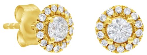 ESTATE .52CT DIAMOND 18K YELLOW GOLD CLASSIC SOLITAIRE HALO FLOWER STUD EARRINGS