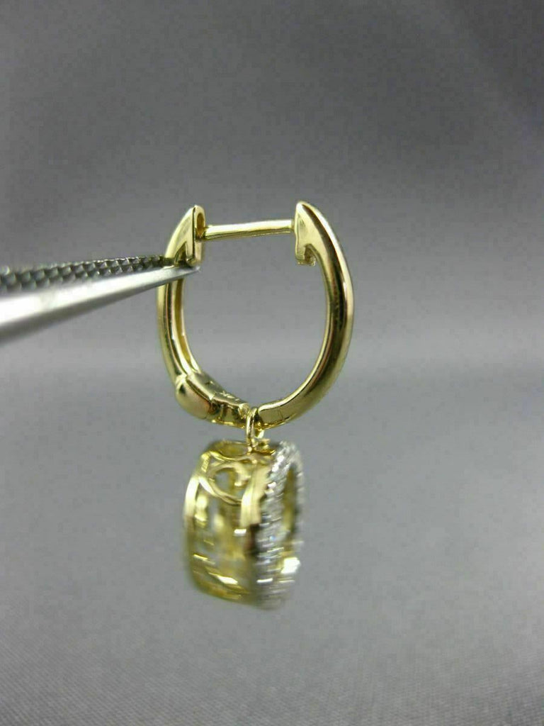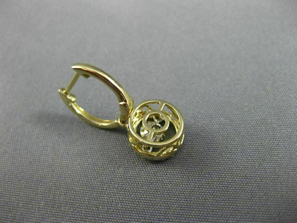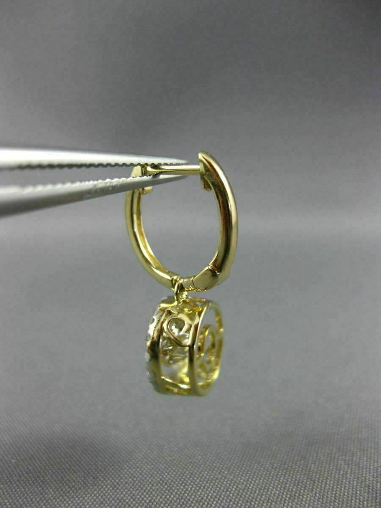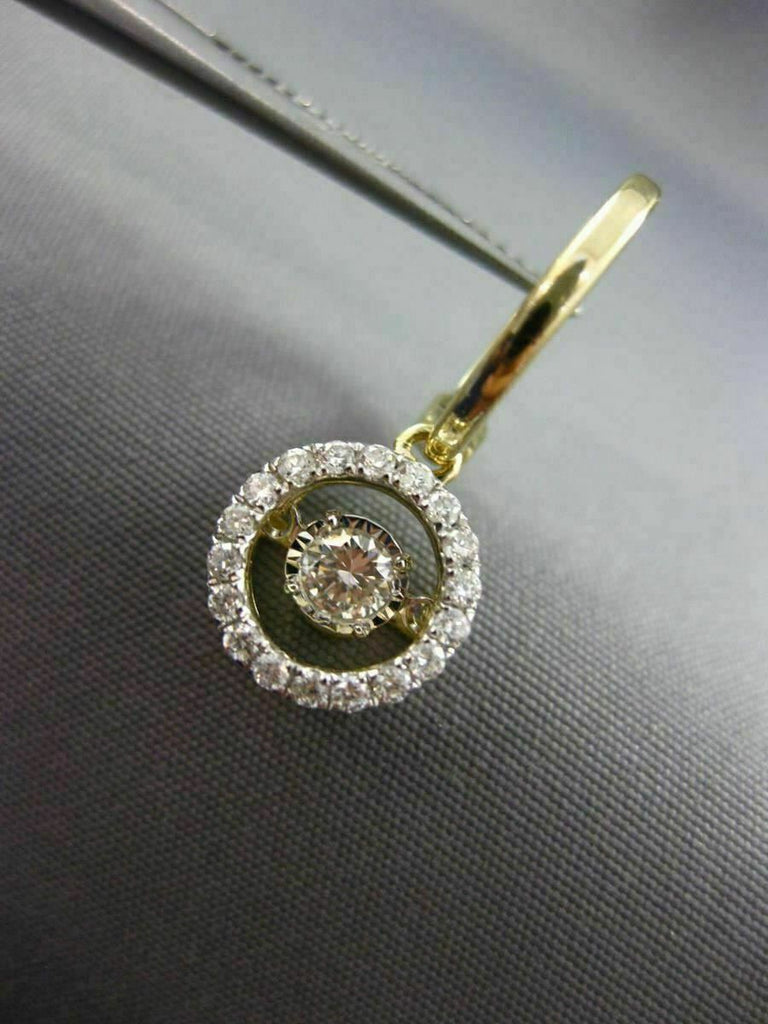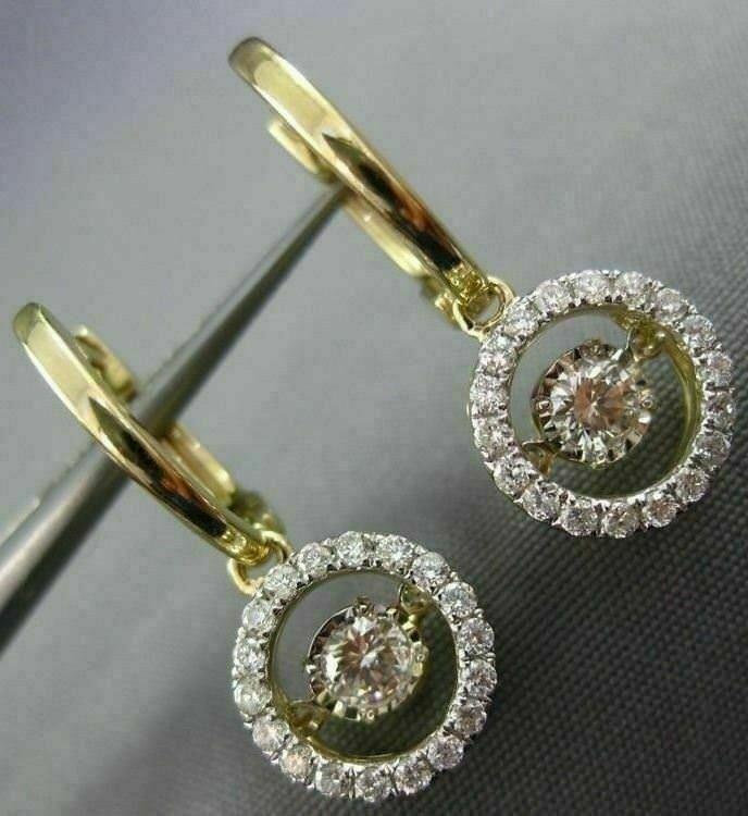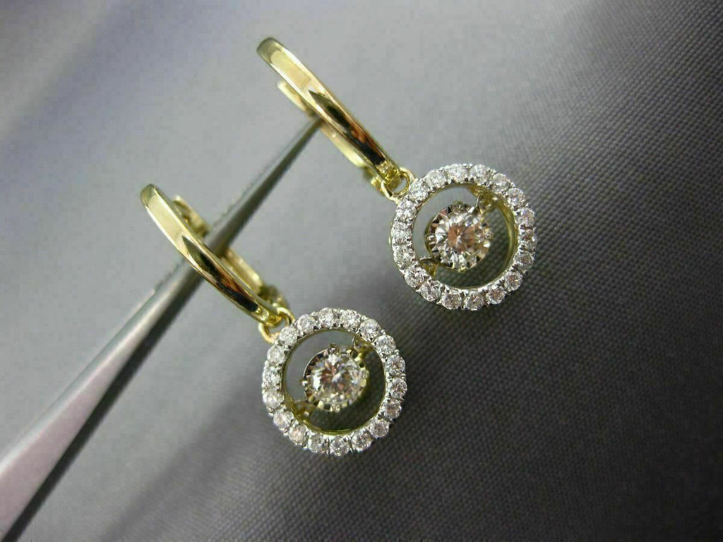 ESTATE .53CT DIAMOND 14K YELLOW GOLD 3D SOLITAIRE HALO FLOATING HANGING EARRINGS