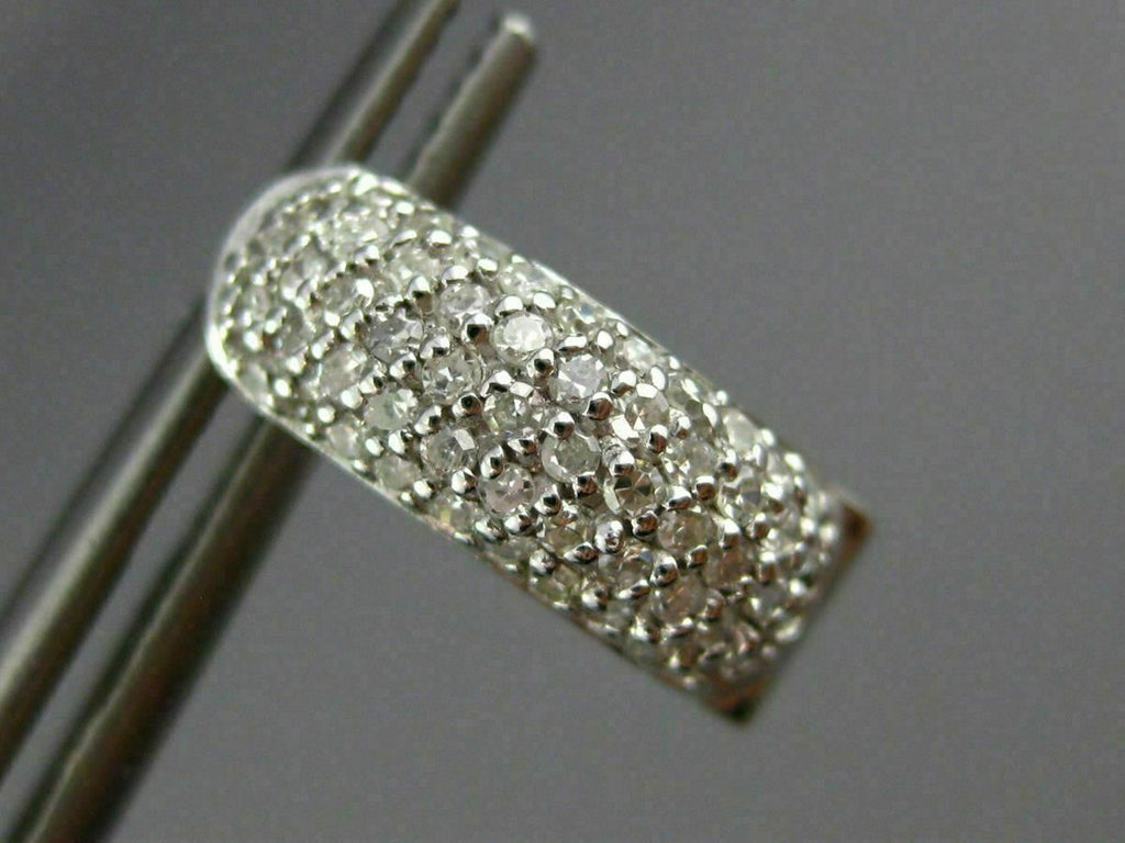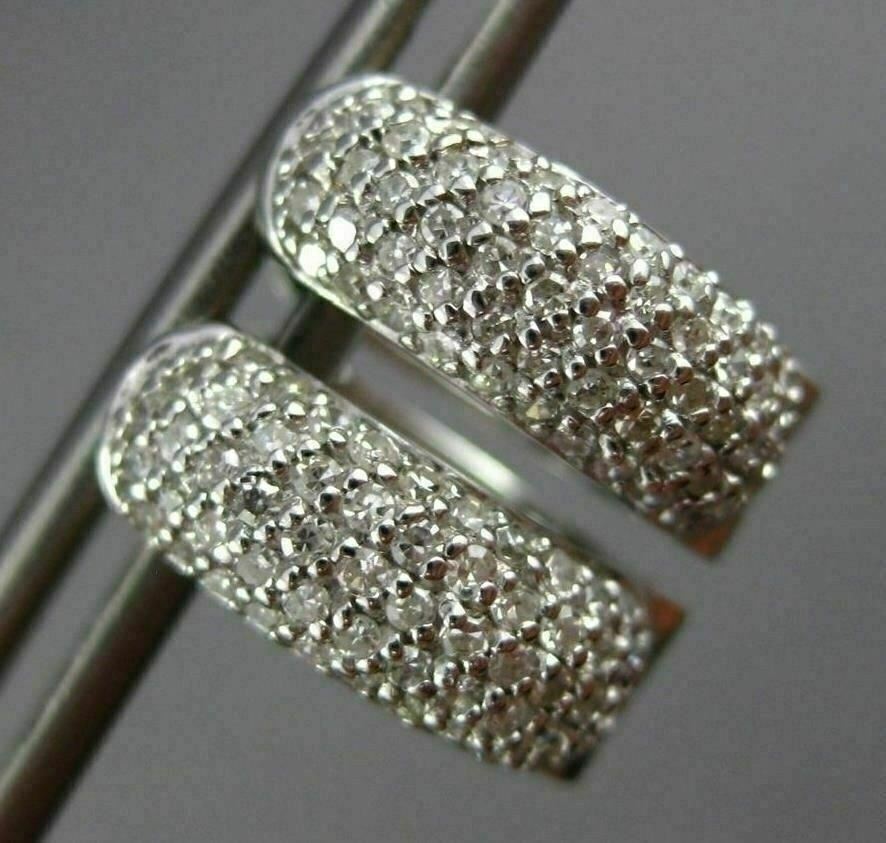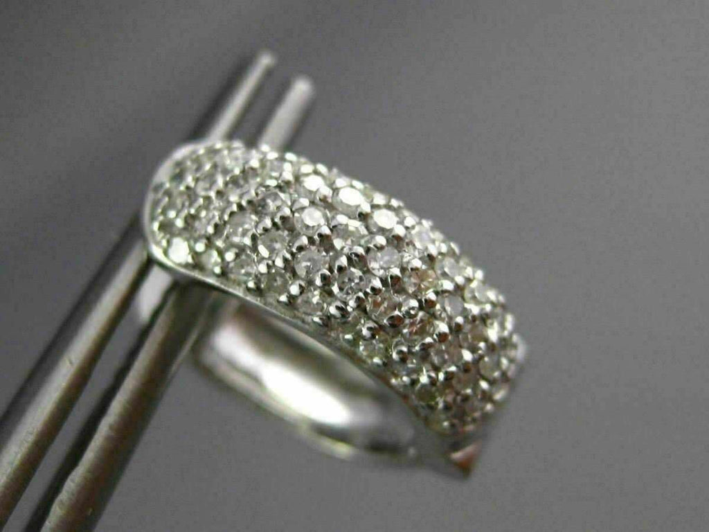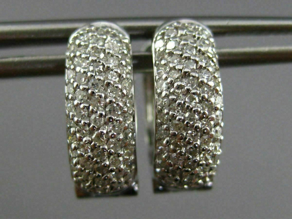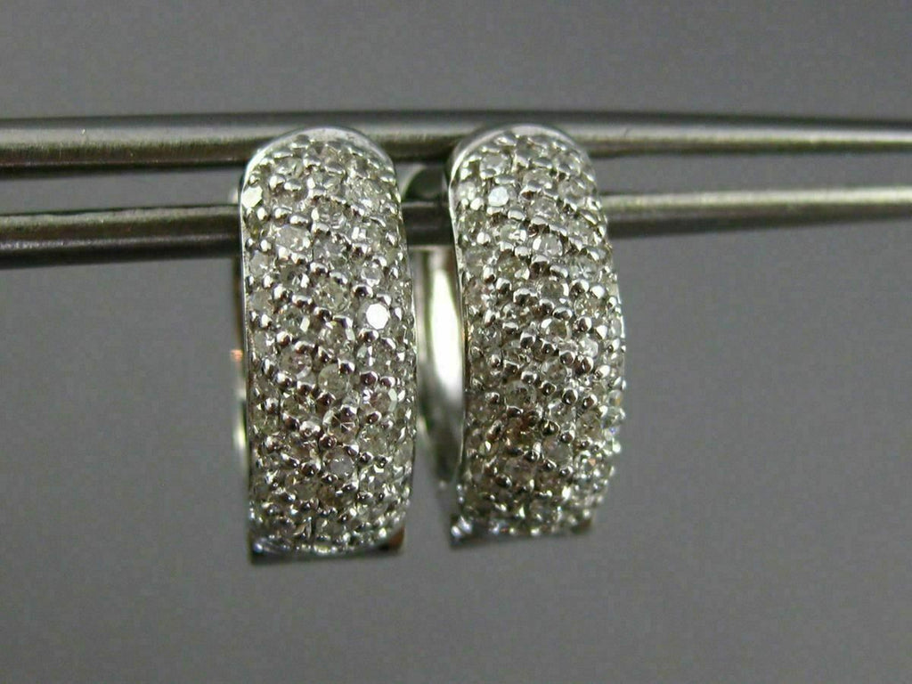 ESTATE .53CT DIAMOND 14KT WHITE GOLD 3D OVAL MULTI ROW HUGGIE HOOP EARRINGS 5mm