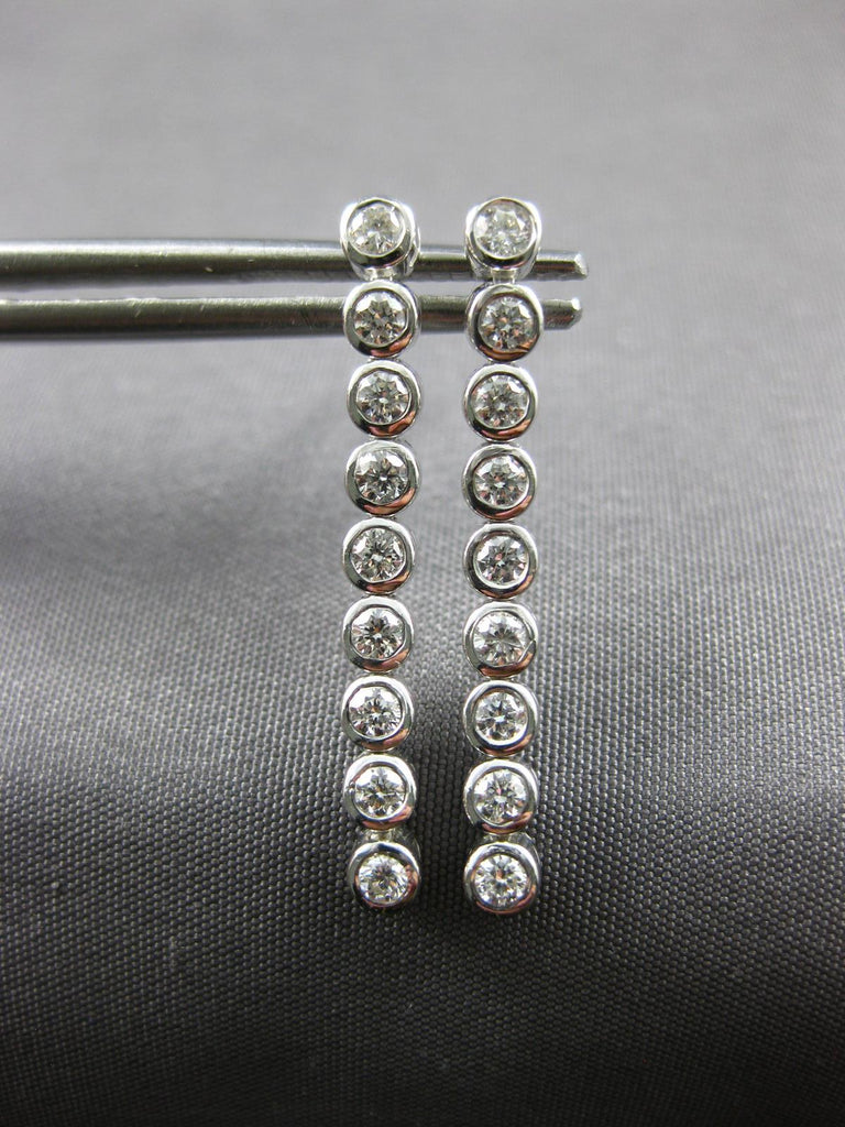 ESTATE 14KT WHITE GOLD HANGING EARRINGS. 3D CLASSIC BAR BEZEL ETOILE DESIGN. DIAMONDS ARE F/G COLOR, VVS/VS CLARITY .54 CARATS. MEASURES 26mm X 3mm. WRITTEN APPRAISAL AVAILABLE. COMES IN A PRESENTABLE GIFT BOX.