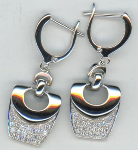 ESTATE 18KT WHITE GOLD LEVERBACK FUN HANGING EARRINGS. 3D DOUBLE HEART SQUARE DESIGN. DIAMONDS ARE F/G COLOR, VSSI CLARITY .54 CARATS. WRITTEN APPRAISAL AVAILABLE. COMES IN A PRESENTABLE GIFT BOX.