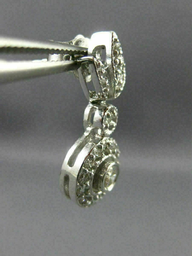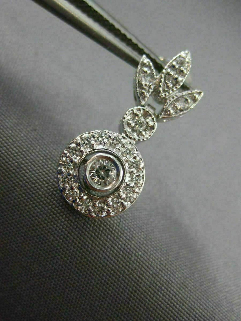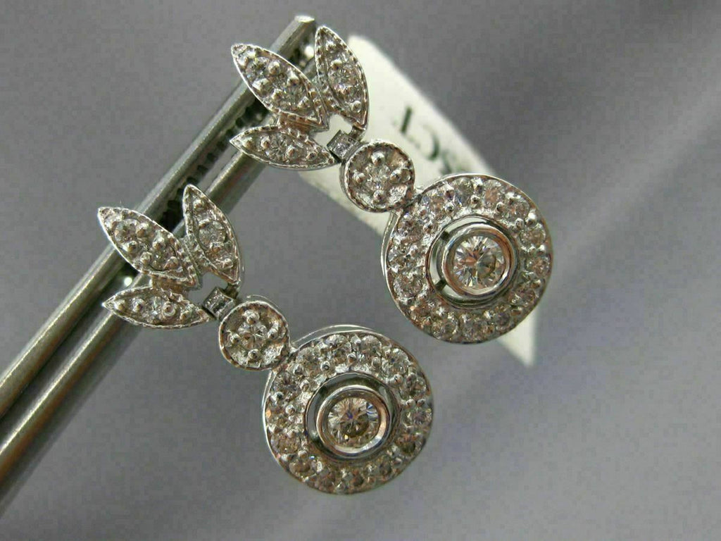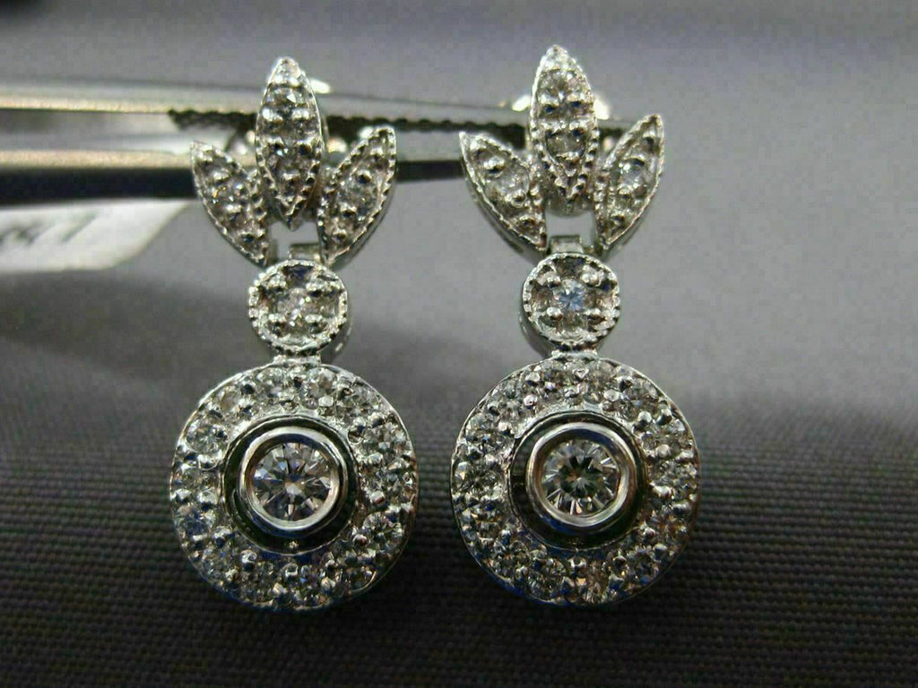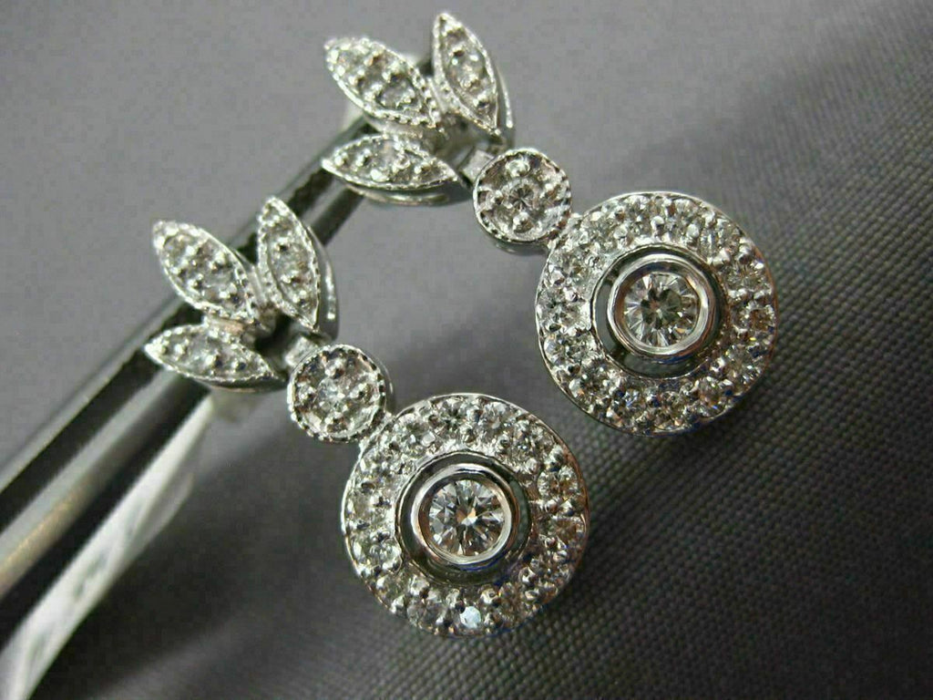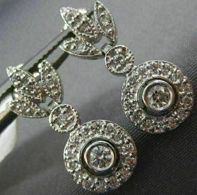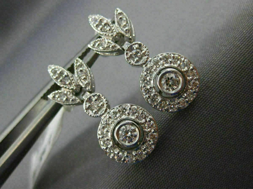 ESTATE .55CT DIAMOND 14KT WHITE GOLD BEZEL FLORAL LEAF HANGING EARRINGS #23875