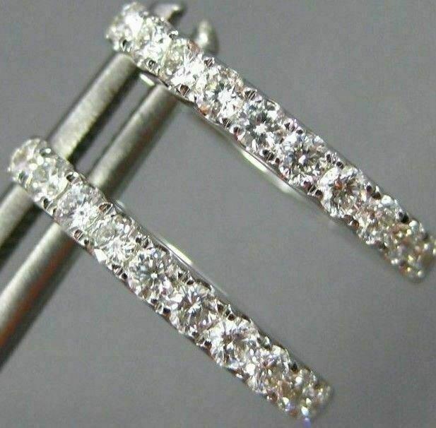 ESTATE .55CT DIAMOND 18KT WHITE GOLD 3D CLASSIC ROUND 2MM OVAL HUGGIE EARRINGS