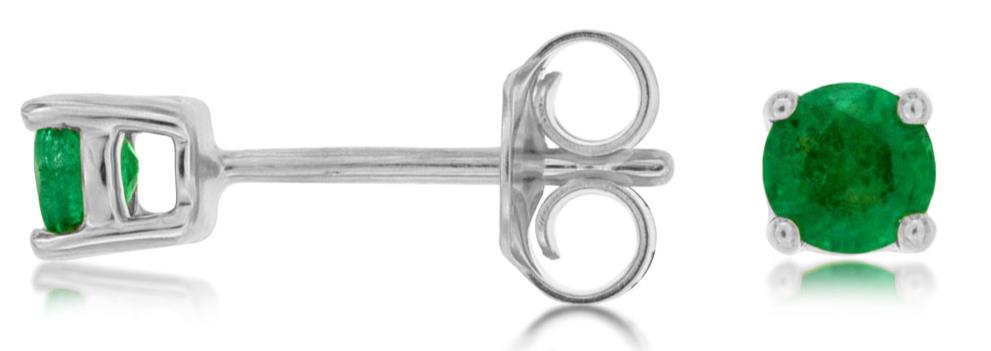 ESTATE .56CT AAA EMERALD 14KT WHITE GOLD 3D CLASSIC ROUND 4 PRONG STUD EARRINGS