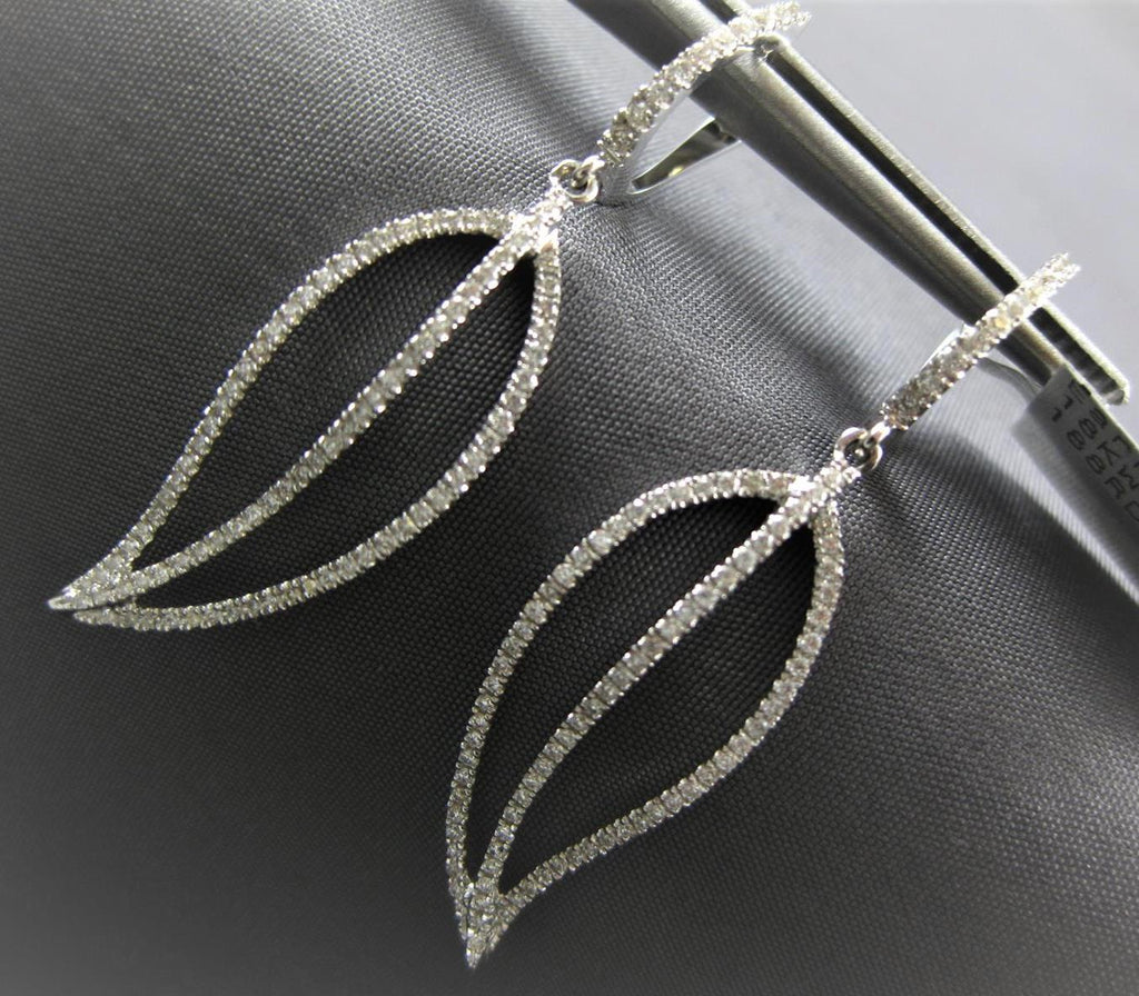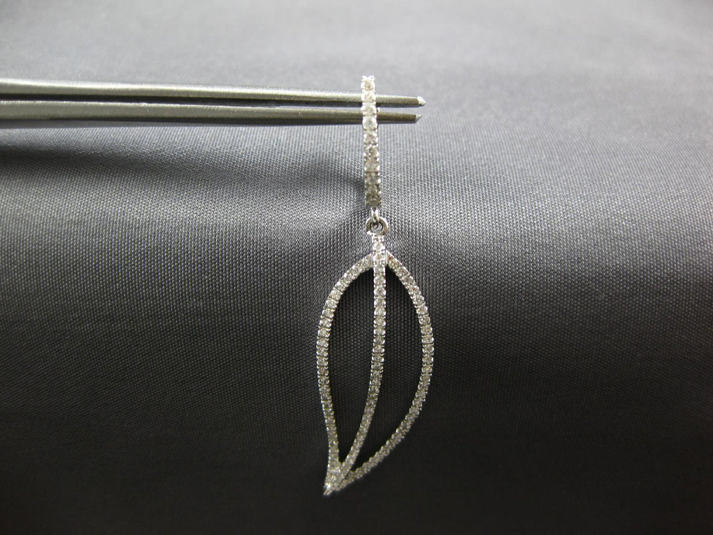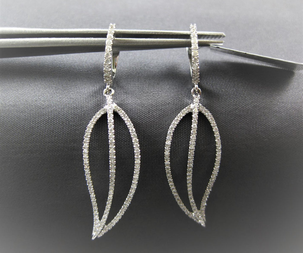 ESTATE 18KT WHITE GOLD EARRINGS. 3D CLASSIC LEAF DESIGN. DIAMONDS ARE F/G COLOR, VSSI CLARITY .56 CARATS. MEASURES 11mm X 42mm. WRITTEN APPRAISAL AVAILABLE. COMES IN A PRESENTABLE GIFT BOX.
