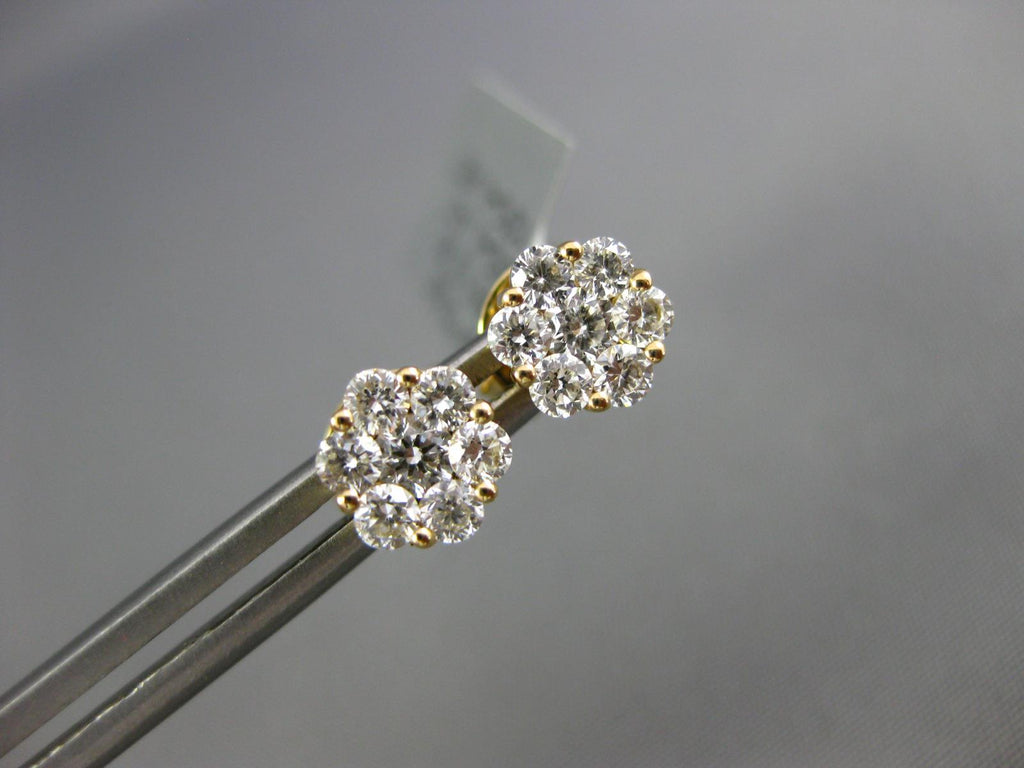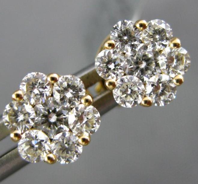 ESTATE .56CT DIAMOND 18KT YELLOW GOLD 3D CLUSTER FLOWER INVISIBLE STUD EARRINGS