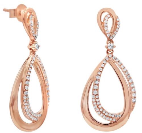 ESTATE .57CT DIAMOND 14KT ROSE GOLD 3D CLASSIC DOUBLE TEAR DROP HANGING EARRINGS