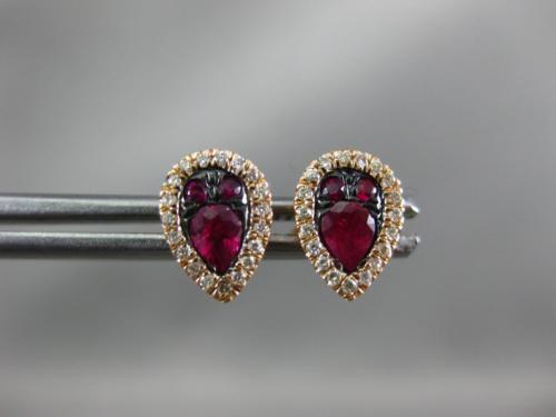 ESTATE .57CT DIAMOND & AAA RUBY 14KT ROSE GOLD CLASSIC PEAR HALO STUD EARRINGS