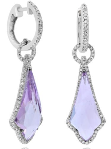 ESTATE 6.07CT DIAMOND & AAA AMETHYST 14KT WHITE GOLD TEAR DROP HANGING EARRINGS