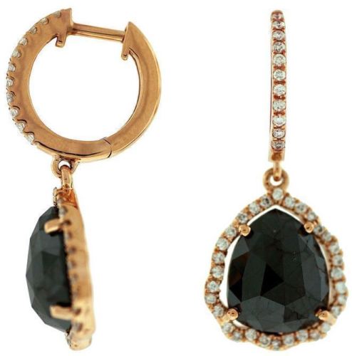 ESTATE 6.71CT WHITE & CHOCOLATE FANCY DIAMOND 18KT ROSE GOLD TEAR DROP EARRINGS