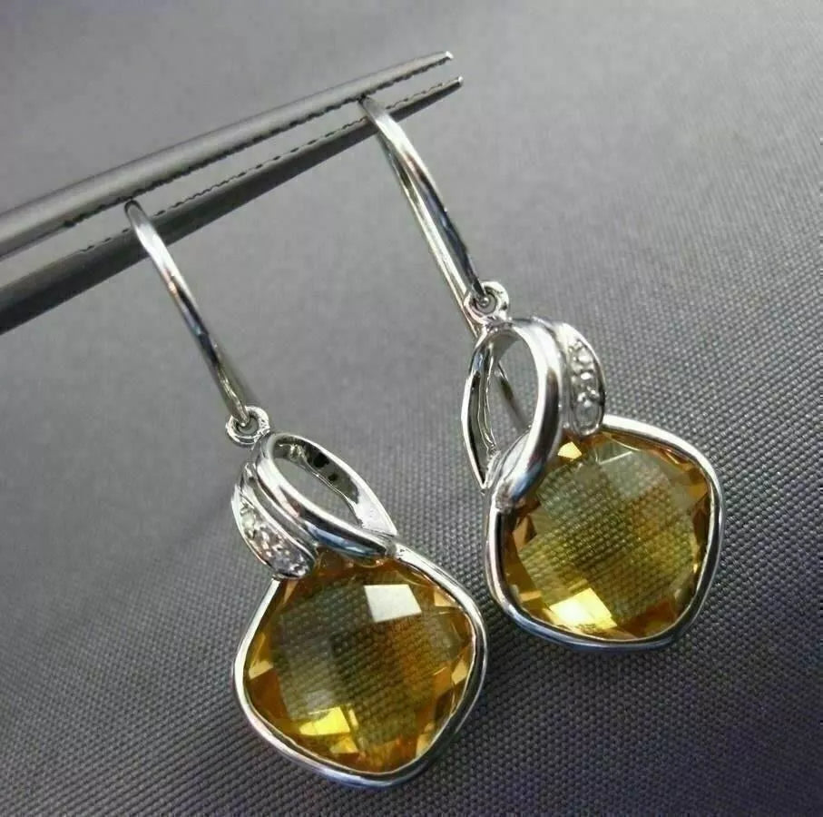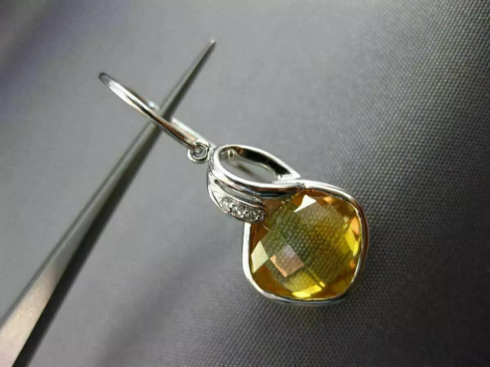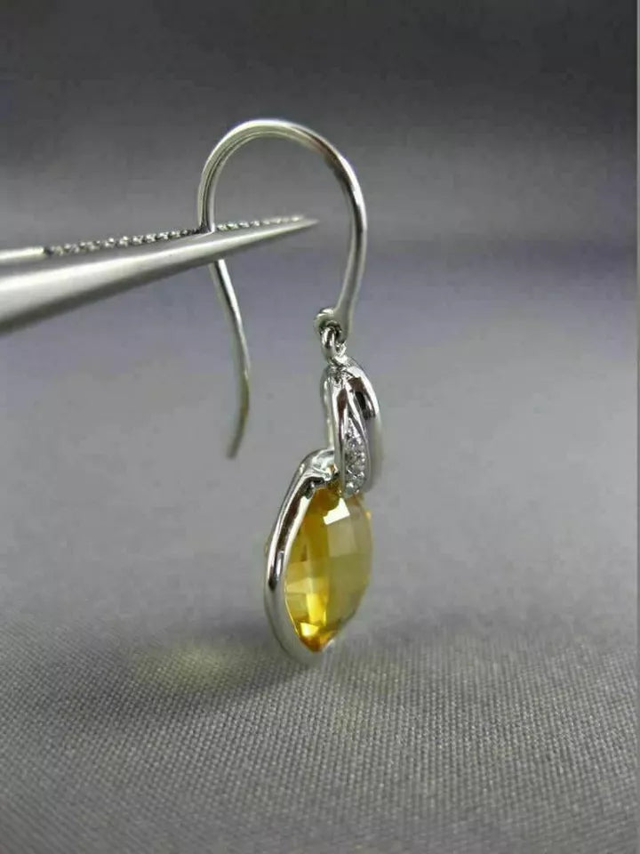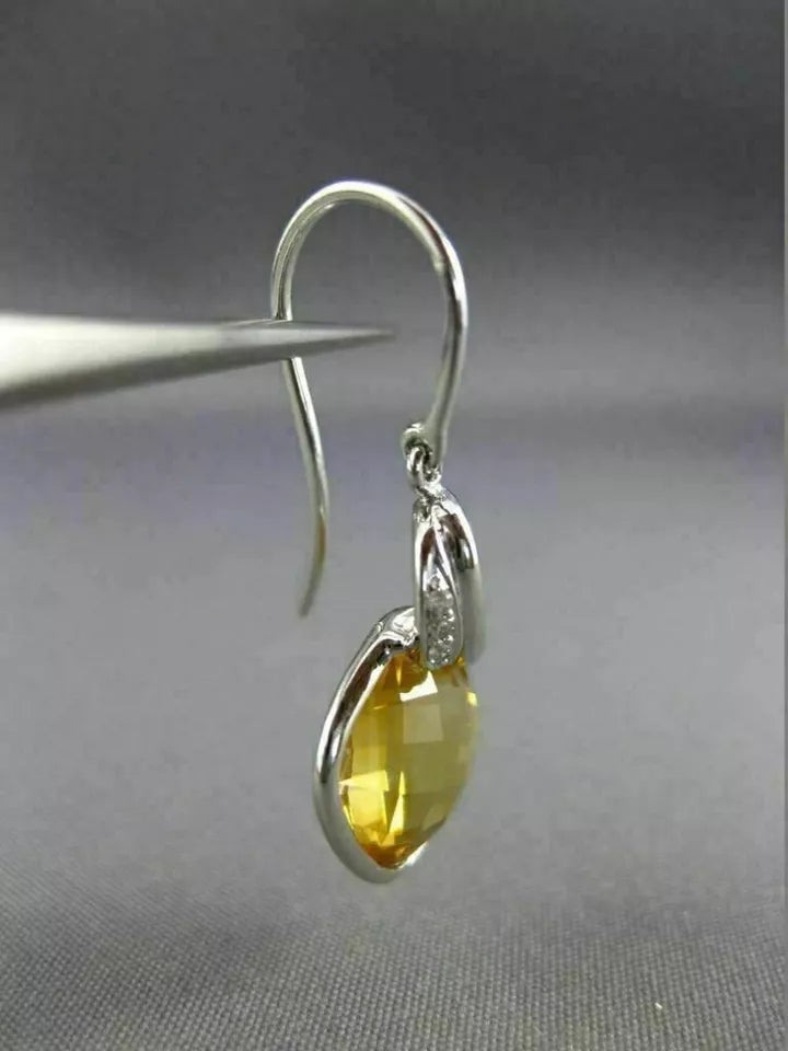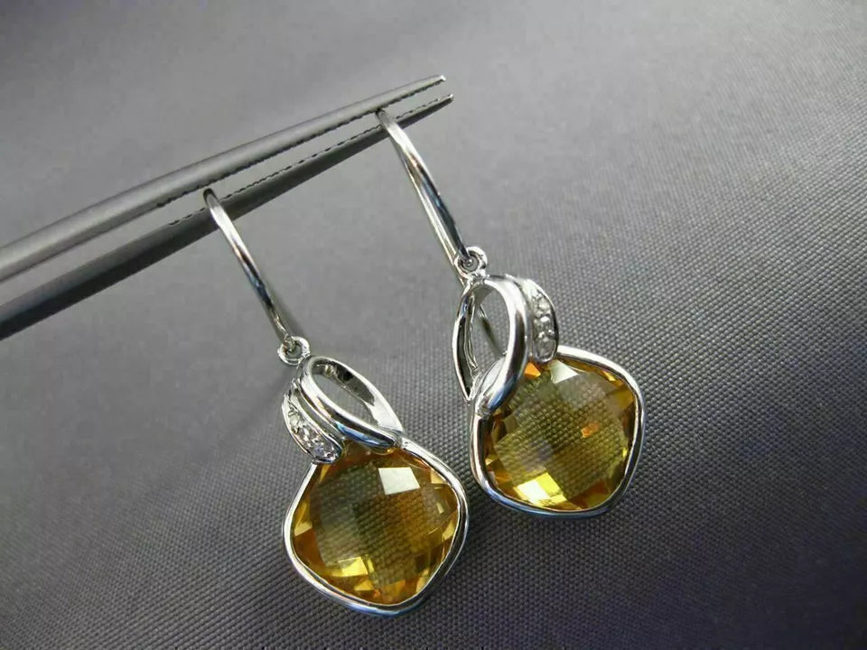 ESTATE 6.96CT DIAMOND & AAA CITRINE 14KT WHITE GOLD SQUARE LEAF HANGING EARRINGS