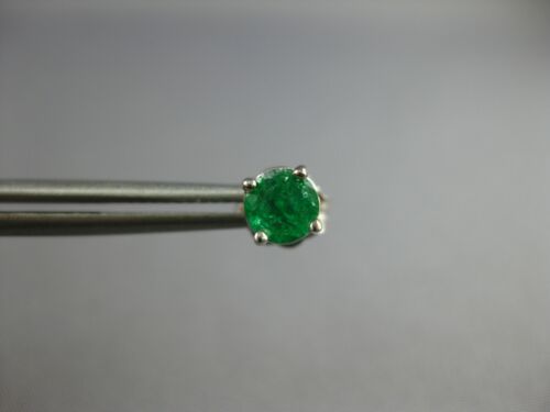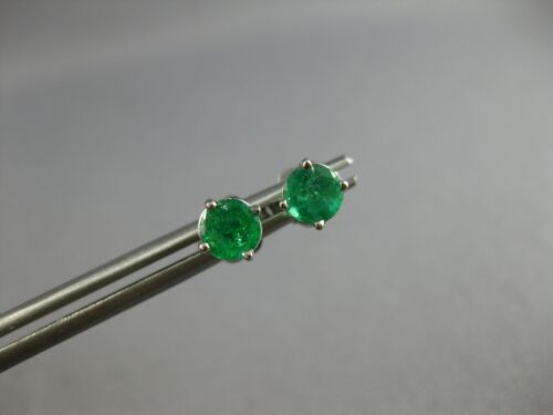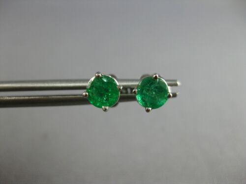 ESTATE .60CT AAA EMERALD 14KT WHITE GOLD 3D ROUND 4 PRONG STUD EARRINGS #27749