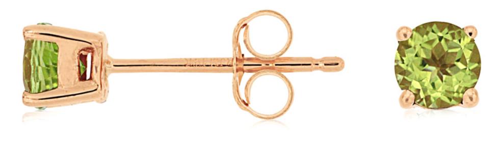 ESTATE 14KT ROSE GOLD STUD EARRINGS. 3D CLASSIC FOUR PRONG DESIGN. AAA EXTRA FACETED PERIDOTS ARE .60 CARATS. WRITTEN APPRAISAL AVAILABLE. COMES IN A PRESENTABLE GIFT BOX.