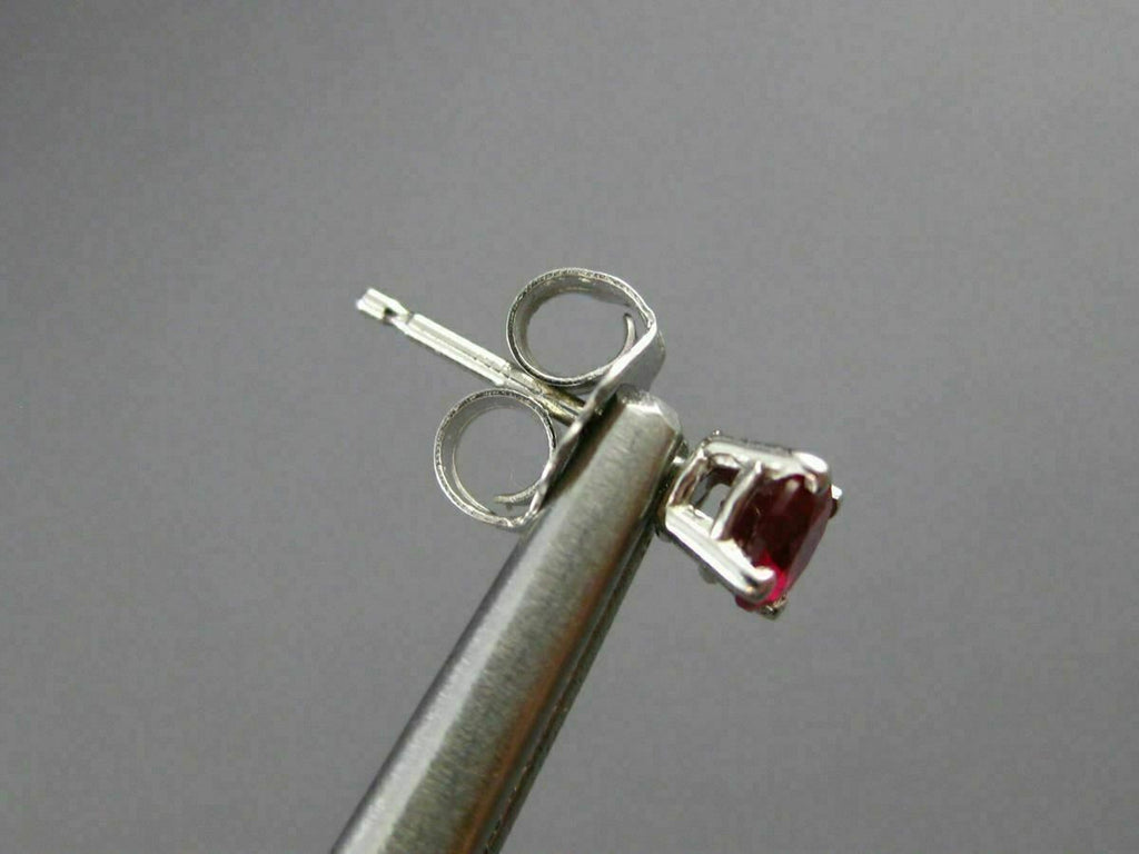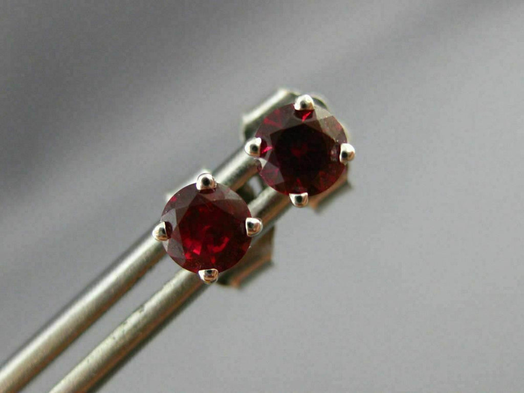 ESTATE 14KT WHITE GOLD STUD EARRINGS. 3D CLASSIC SOLITAIRE ROUND DESIGN. AAA RUBIES ARE .60 CARATS. MEASURES 4mm WIDE. WRITTEN APPRAISAL AVAILABLE. COMES IN A PRESENTABLE GIFT BOX