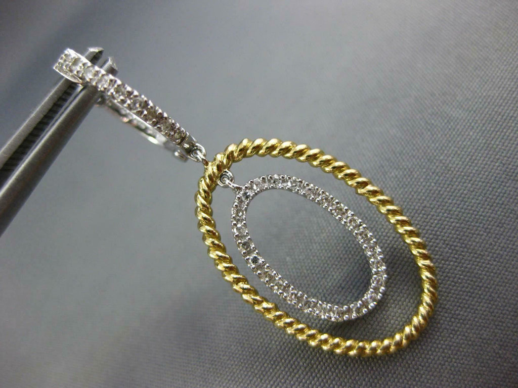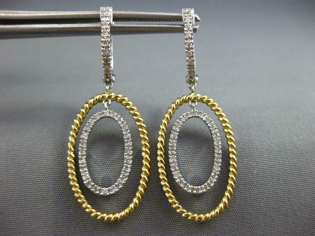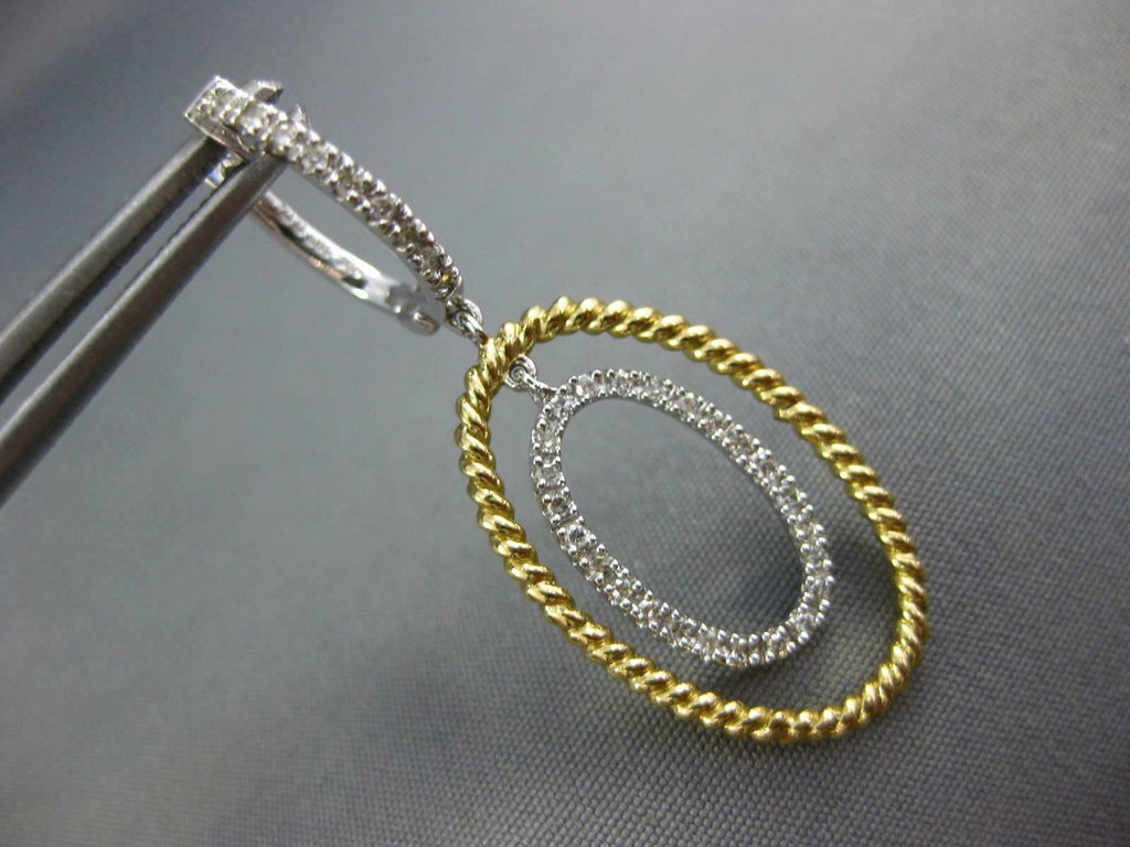ESTATE 14KT WHITE AND YELLOWGOLD HANGING EARRINGS. 3D CLASSIC DOUBLE OVAL ROPEDESIGN. DIAMONDS ARE F/G COLOR, VSSI CLARITY .60 CARATS.MEASURES 36mm X 14mm. WRITTEN APPRAISAL AVAILABLE. COMES IN A PRESENTABLE GIFT BOX.