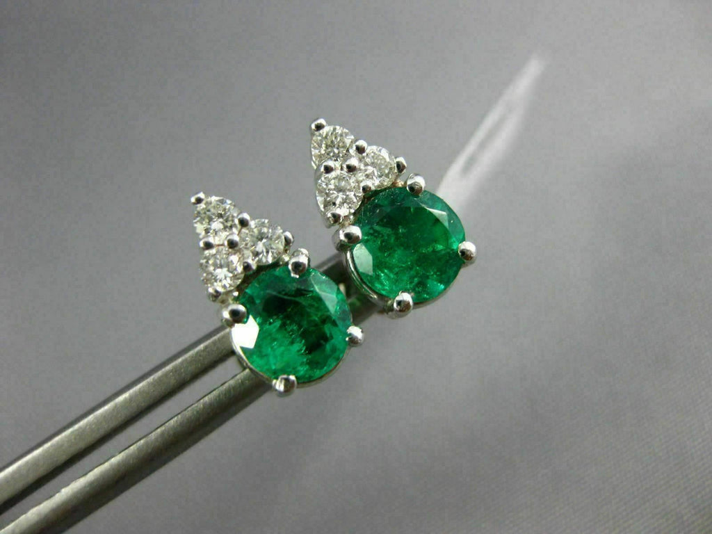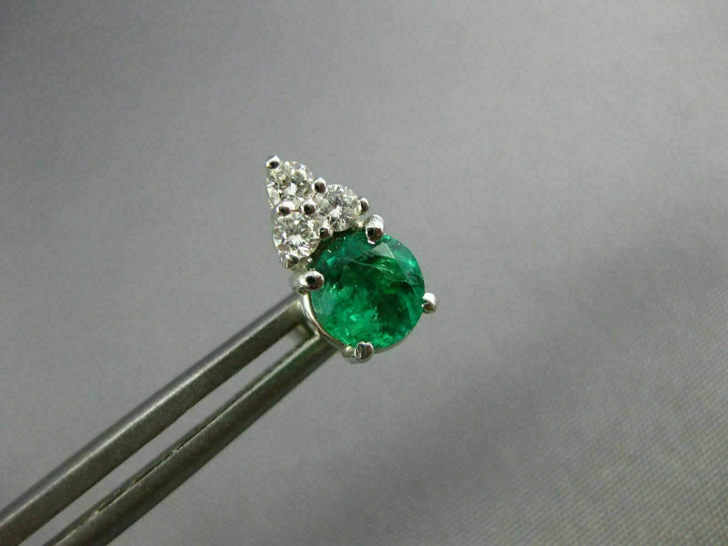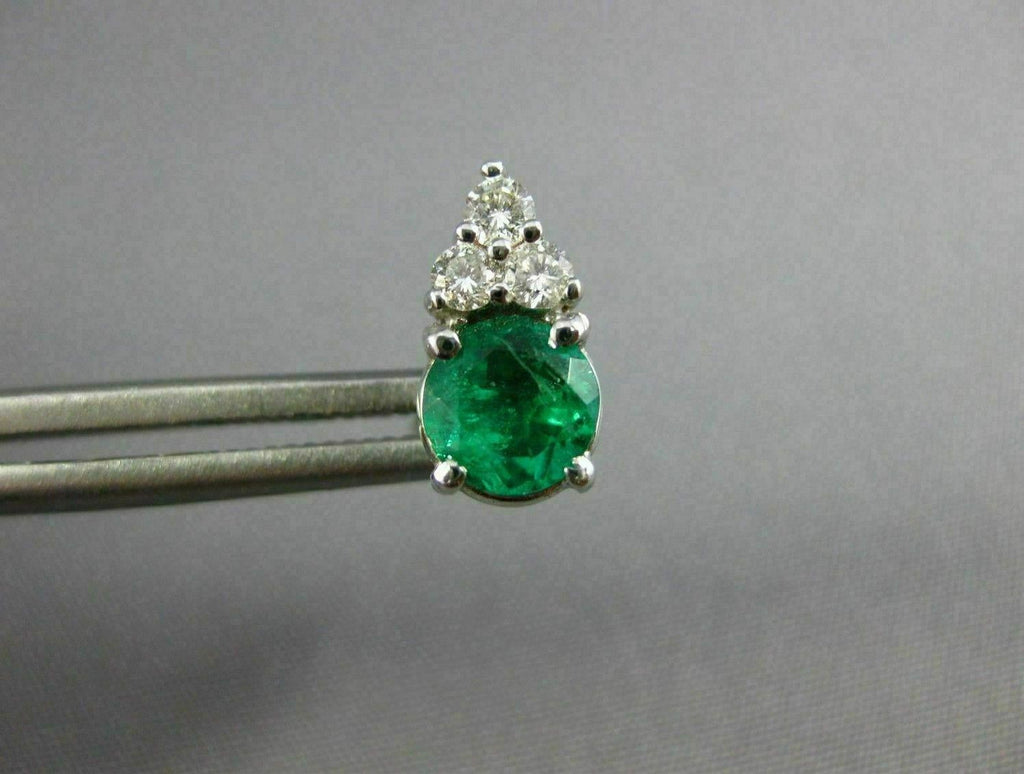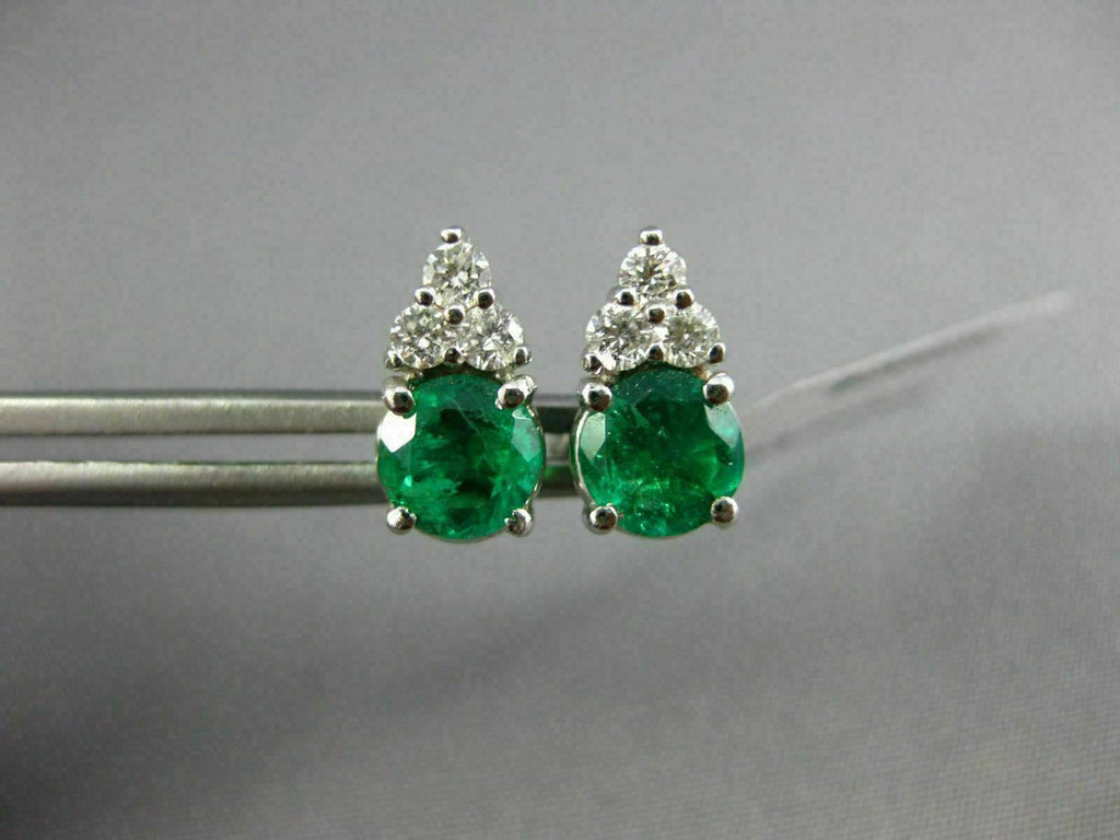 ESTATE .60CT DIAMOND & AAA EMERALD 14KT WHITE GOLD 3D ROUND STUD EARRINGS #26659