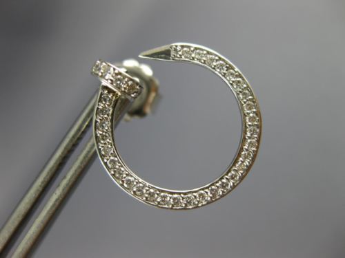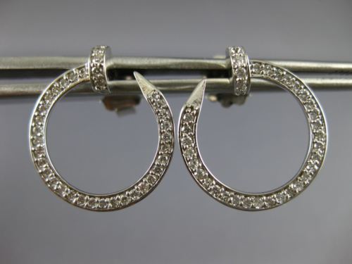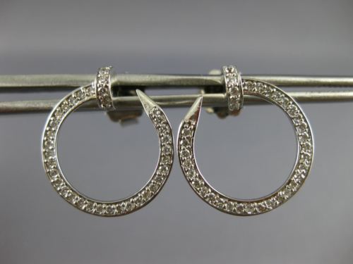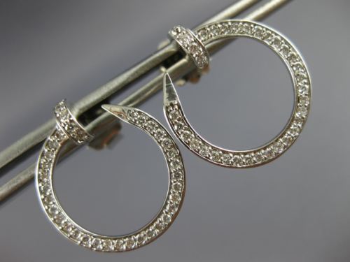 ESTATE .62CT DIAMOND 18KT WHITE GOLD 3D SIDEWAYS ROUND NAIL FUN HOOP EARRINGS