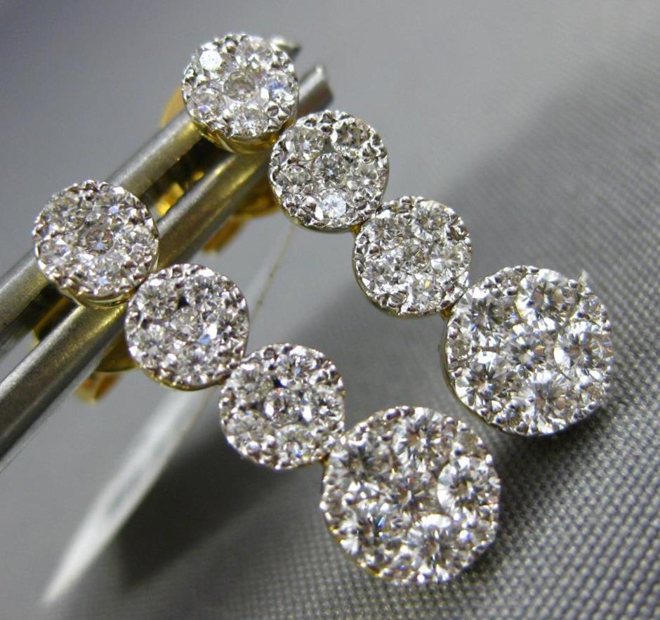 ESTATE .63CT DIAMOND 18KT YELLOW GOLD 3D CLUSTER FLOWER JOURNEY HANGING EARRINGS