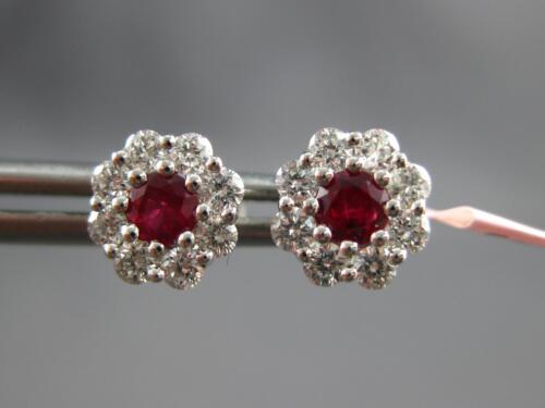 ESTATE .63CT DIAMOND & AAA RUBY 14KT WHITE GOLD 3D CLASSIC FLOWER STUD EARRINGS