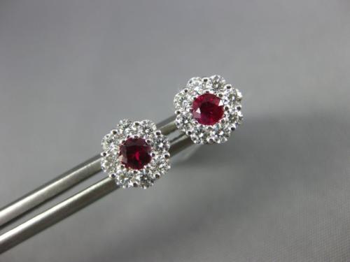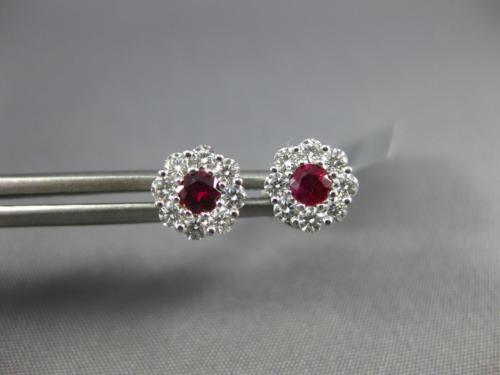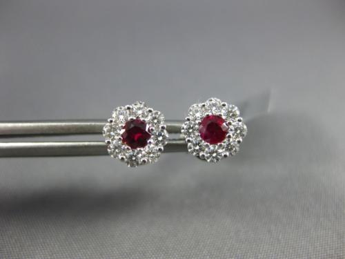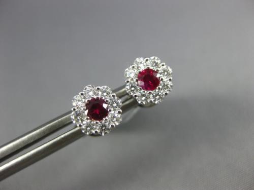 ESTATE .63CT DIAMOND & AAA RUBY 18KT WHITE GOLD 3D CLUSTER FLOWER STUD EARRINGS