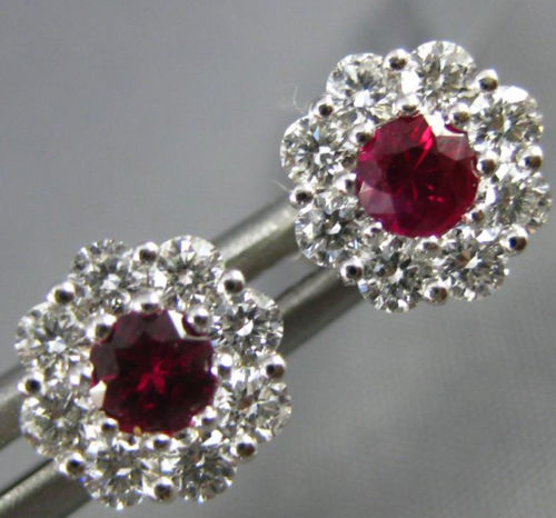 ESTATE 18KT WHITE GOLD STUD EARRINGS. 3D CLUSTER FLOWER CLASSIC DESIGN. DIAMONDS ARE F/G COLOR, VSSI CLARITY .39 CARATS. AAA RUBIES ARE .24 CARATS. MEASURES 7mm WIDE. WRITTEN APPRAISAL AVAILABLE. COMES IN A PRESENTABLE GIFT BOX.