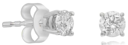 ESTATE .64CT DIAMOND 14KT WHITE GOLD 3D CLASSIC SOLITAIRE 4 PRONG STUD EARRINGS