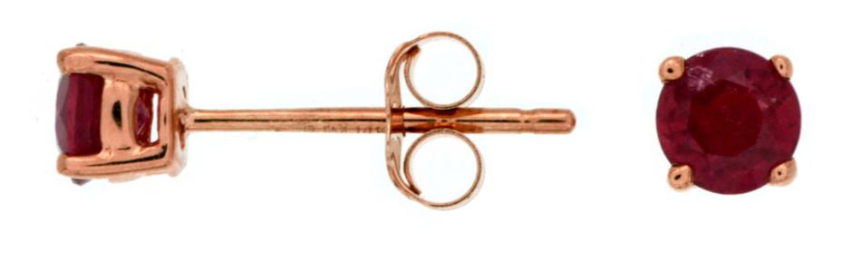 ESTATE 14KT ROSE GOLD STUD EARRINGS. 3D CLASSIC FOUR PRONG DESIGN. AAA EXTRA FACETED ROUND RUBIES ARE .65 CARATS. WRITTEN APPRAISAL AVAILABLE. COMES IN A PRESENTABLE GIFT BOX.