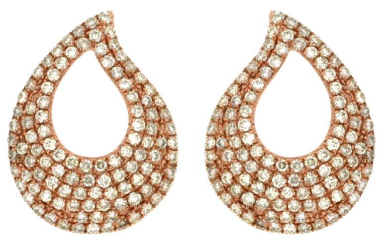 ESTATE .65CT DIAMOND 14KT ROSE GOLD 3D CLASSIC OPEN TEAR DROP HANGING EARRINGS