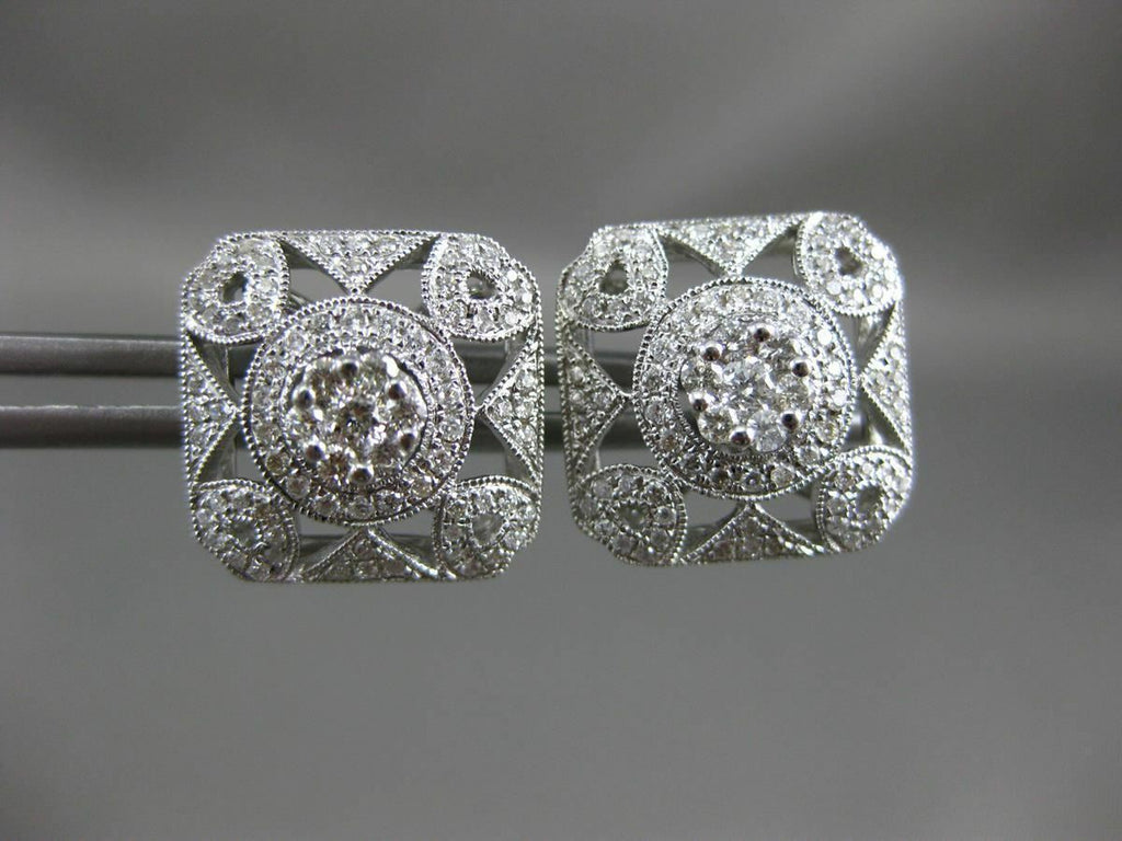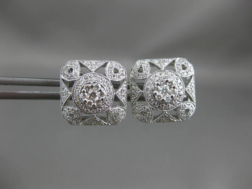 ESTATE .65CT DIAMOND 14KT WHITE GOLD 3D CLASSIC CLUSTER SQUARE HEART EARRINGS